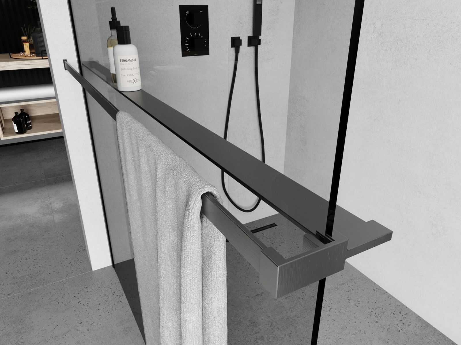 Mexen polička ke sprchové stěně s relingem na ručníky, kartáčovaná gun šedá - 800-02-66