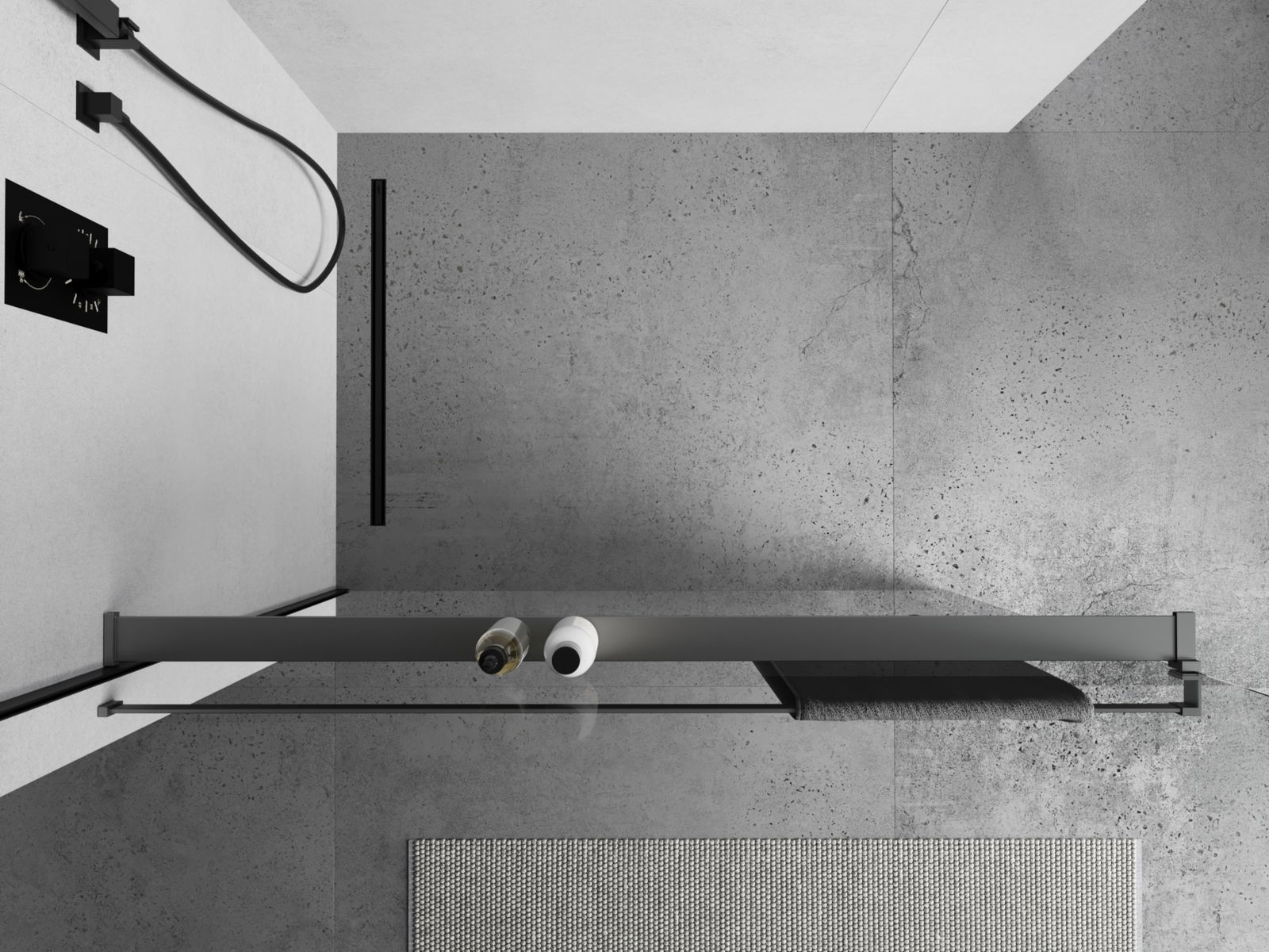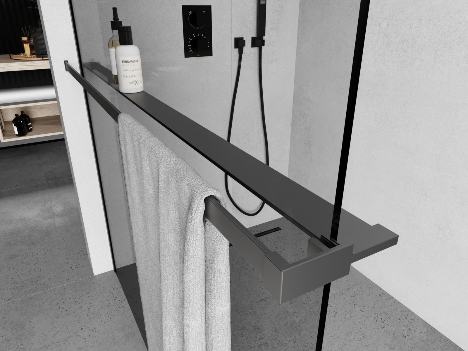 Mexen polička do sprchové stěny s relingem na ručníky, gun metal - 800-02-95
