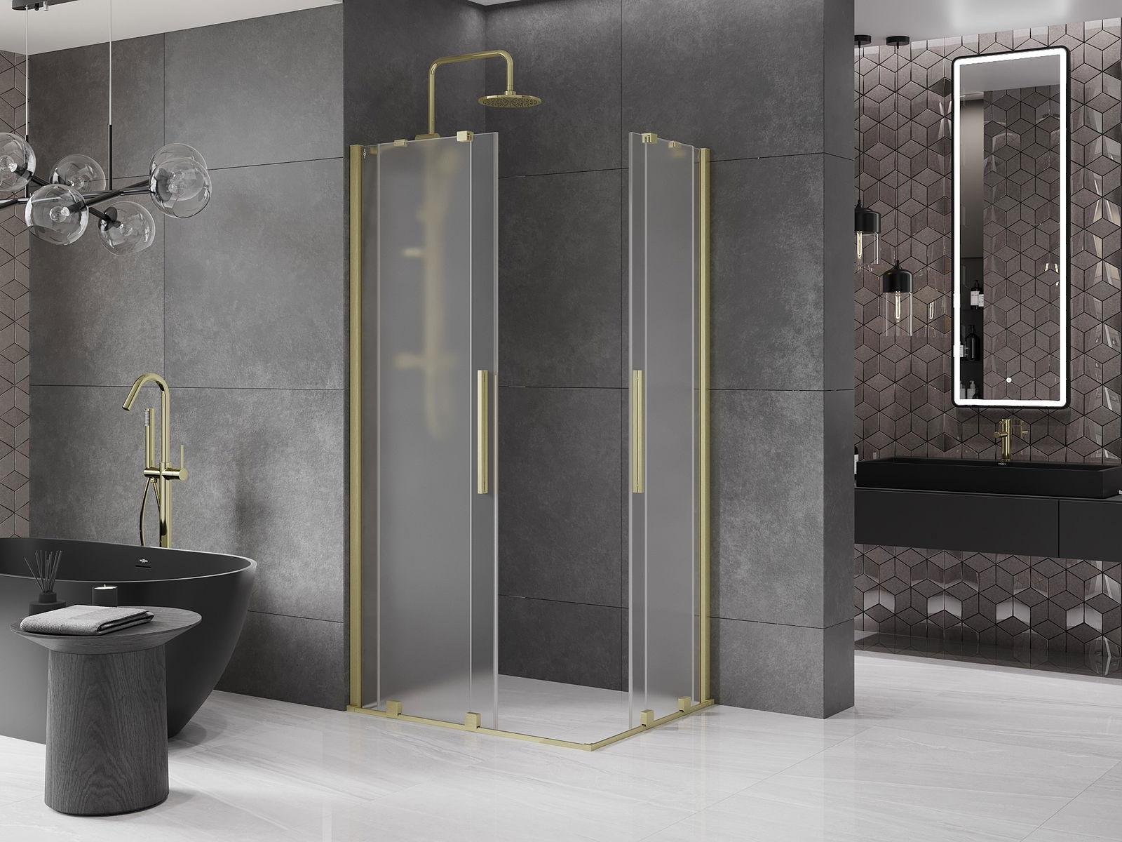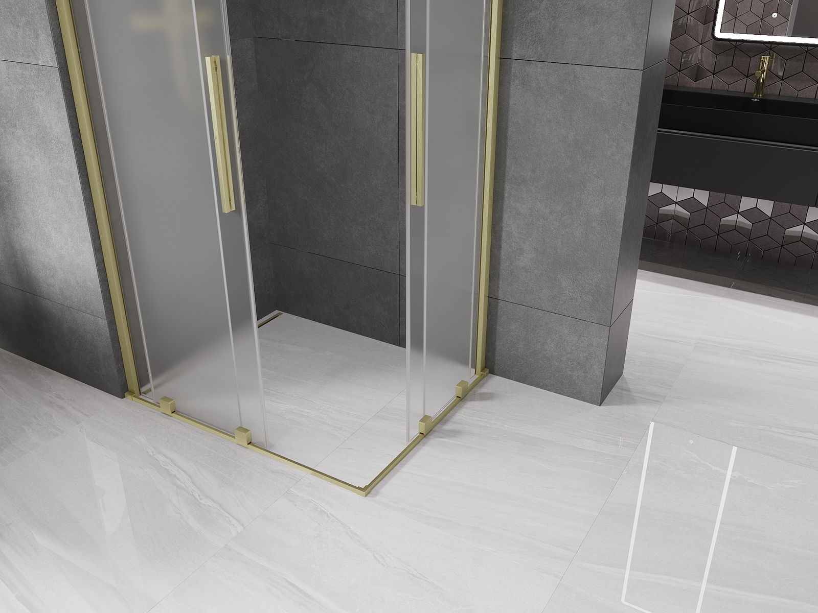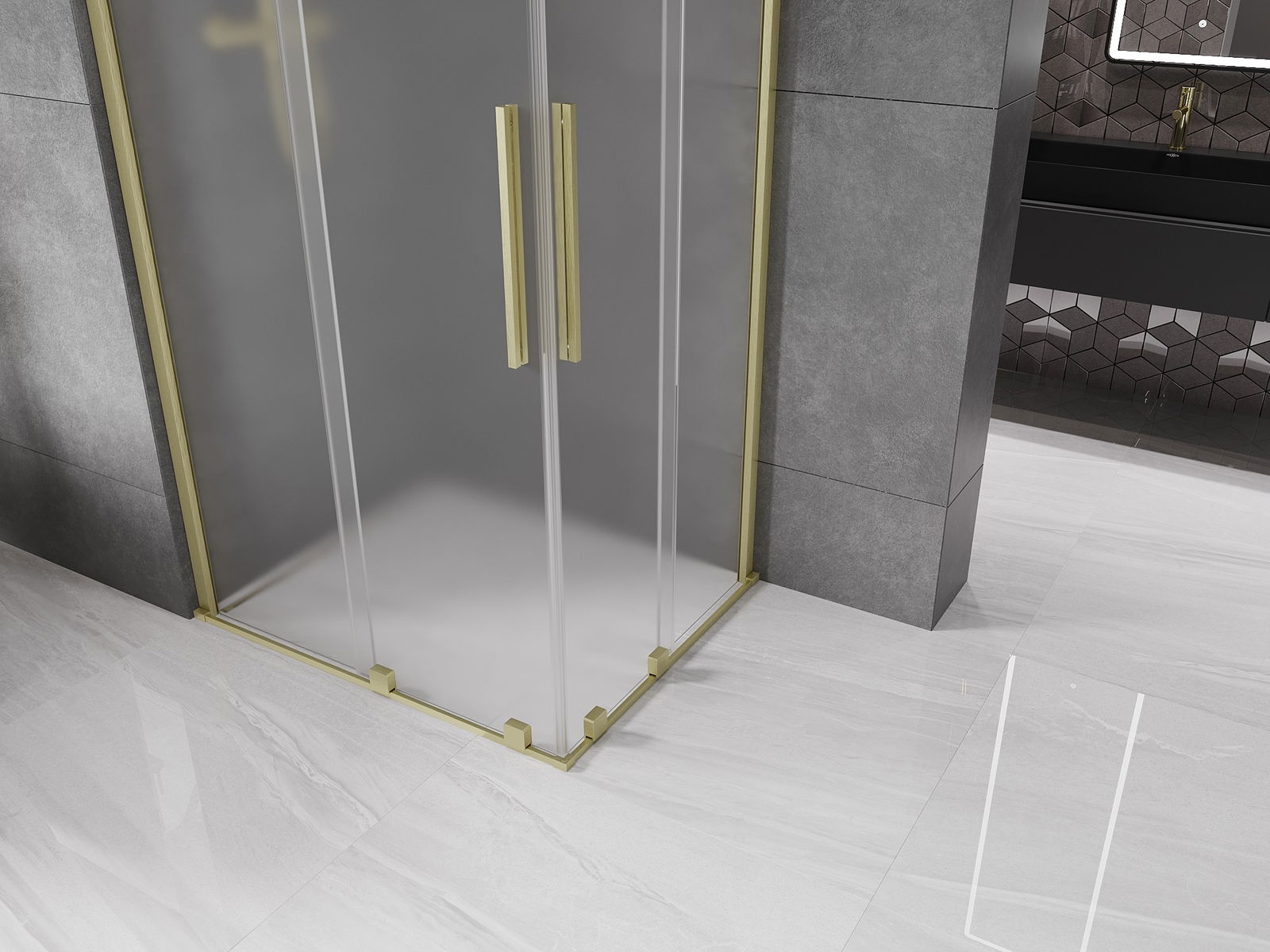 Mexen Velar Duo sprchová kabina posuvná 90 x 80 cm, matná, zlatá kartáčovaná - 871-090-080-32-55