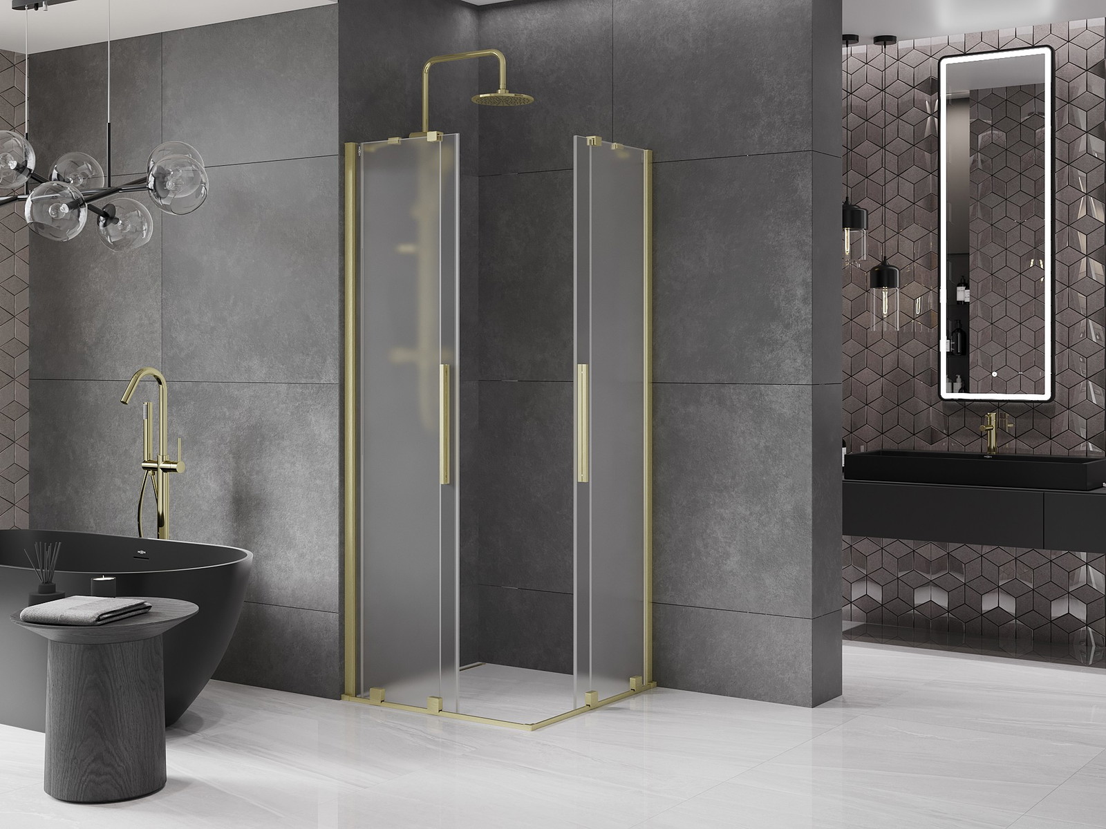 Mexen Velar Duo posuvná sprchová kabina 90 x 90 cm, matná, zlatá kartáčovaná - 871-090-090-32-55