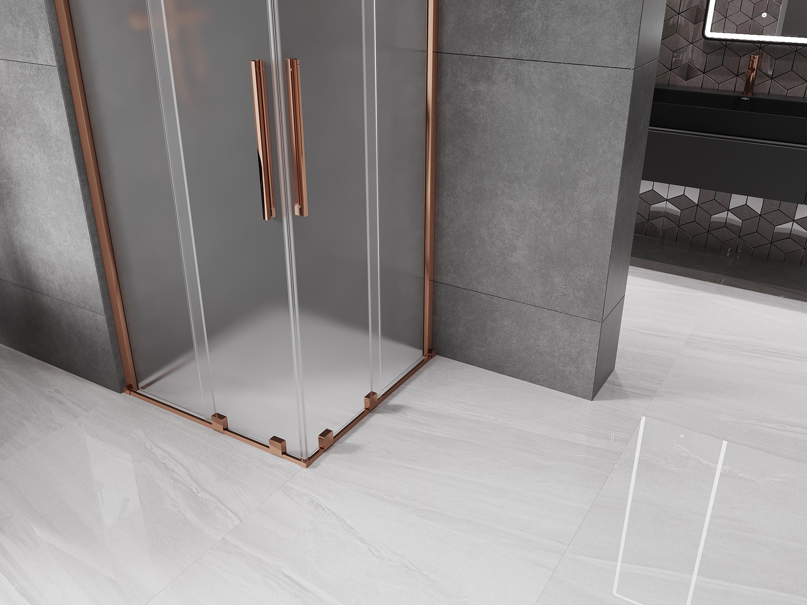 Mexen Velar Duo posuvná sprchová kabina 90 x 90 cm, matná, růžové zlato - 871-090-090-32-60