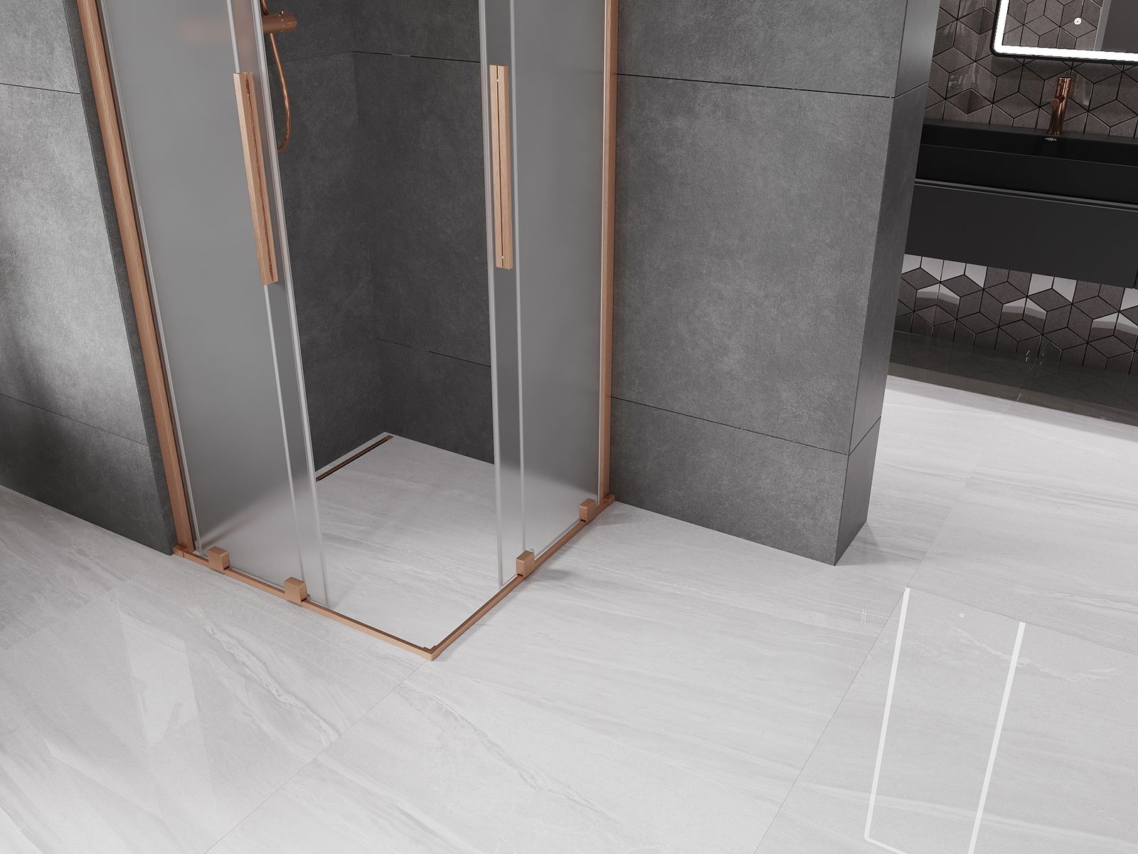 Mexen Velar Duo posuvná sprchová kabina 80 x 80 cm, námraza, kartáčovaná měď - 871-080-080-32-65
