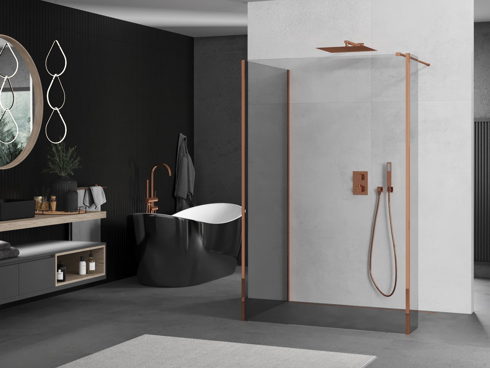 Mexen Kioto sprchová stěna Walk-in 90 x 80 x 30 cm, transparentní, růžové zlato - 800-090-080-221-60-00-030