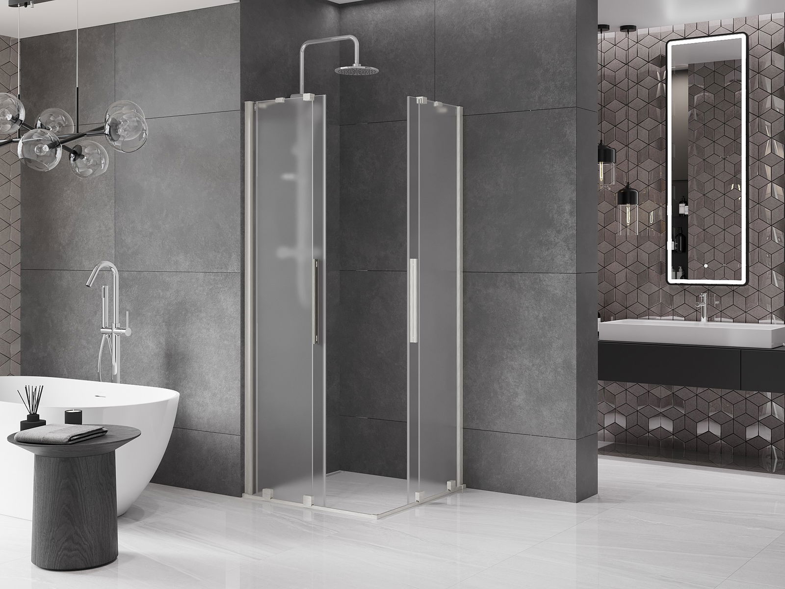 Mexen Velar Duo posuvná sprchová kabina 80 x 80 cm, matné sklo, kartáčovaný nikl - 871-080-080-32-97