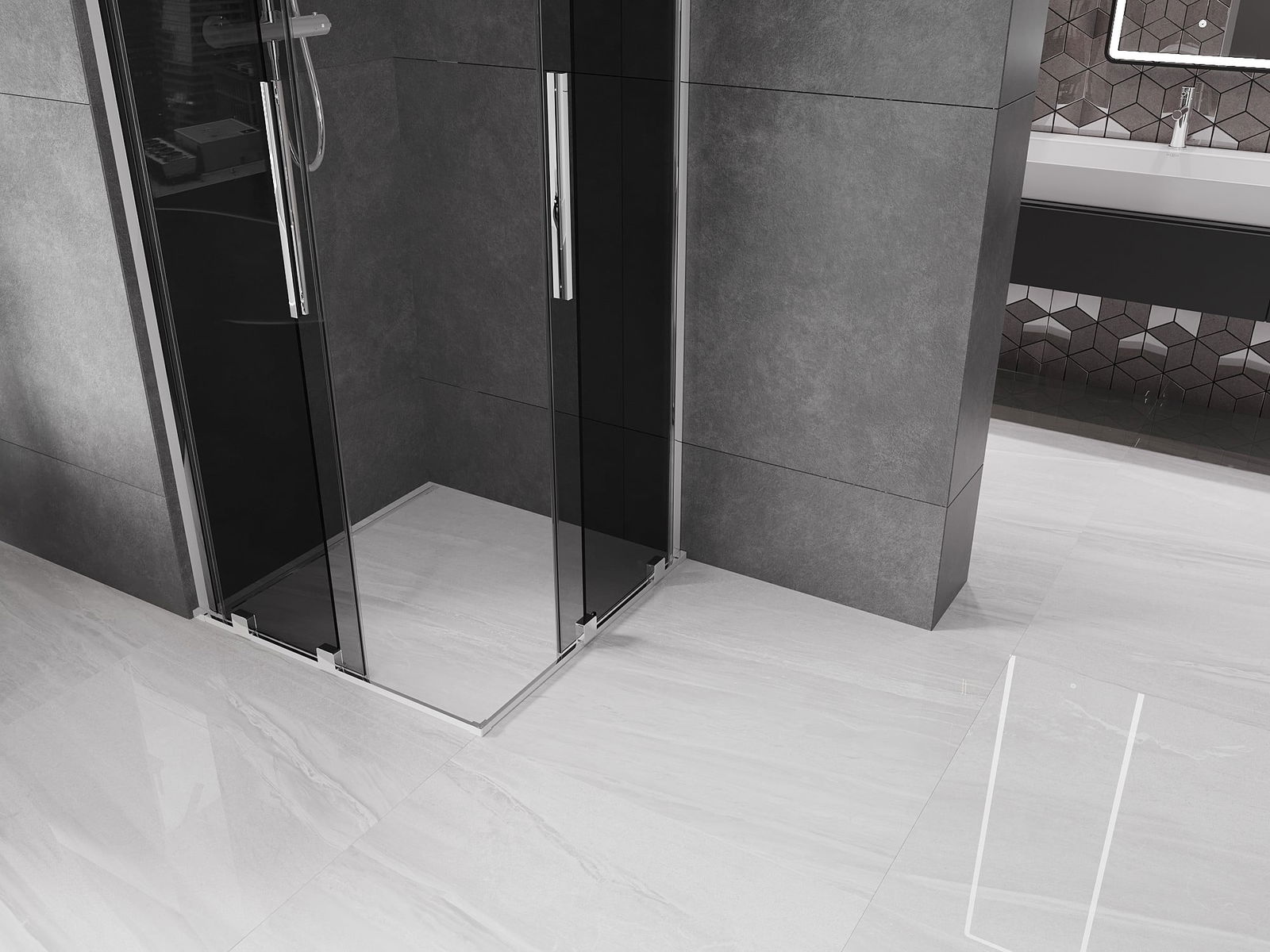 Díky použití univerzálního montážního systému mohou být sprchové dveře namontovány na pravé nebo levé straně, podle potřeby. Díky tomu můžete snadno navrhnout sprchu přizpůsobenou prostoru koupelny.