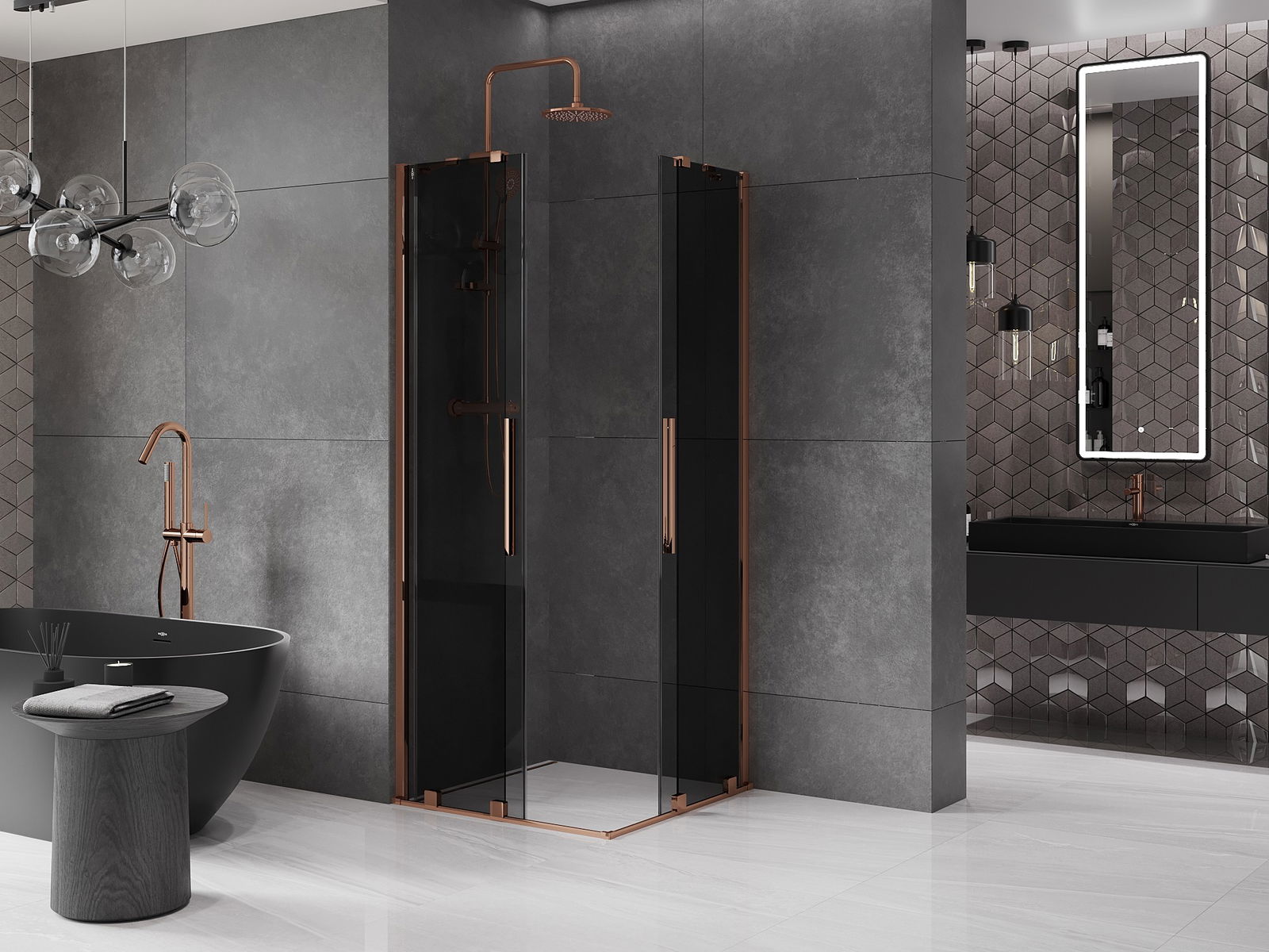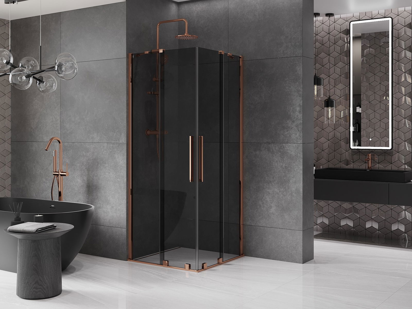Mexen Velar Duo sprchový kout posuvný 80 x 80 cm, grafit, růžové zlato - 871-080-080-42-60