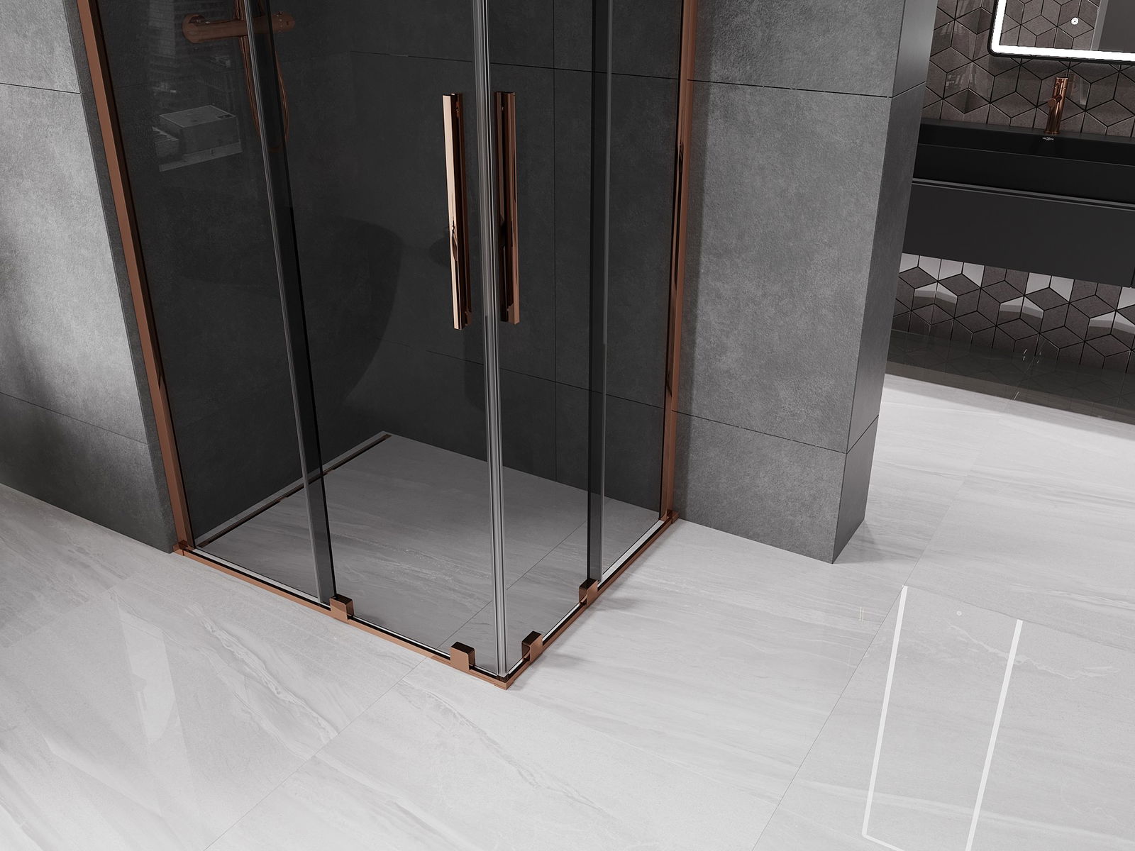 Mexen Velar Duo posuvná sprchová kabina 100 x 90 cm, grafit, růžové zlato - 871-100-090-42-60
