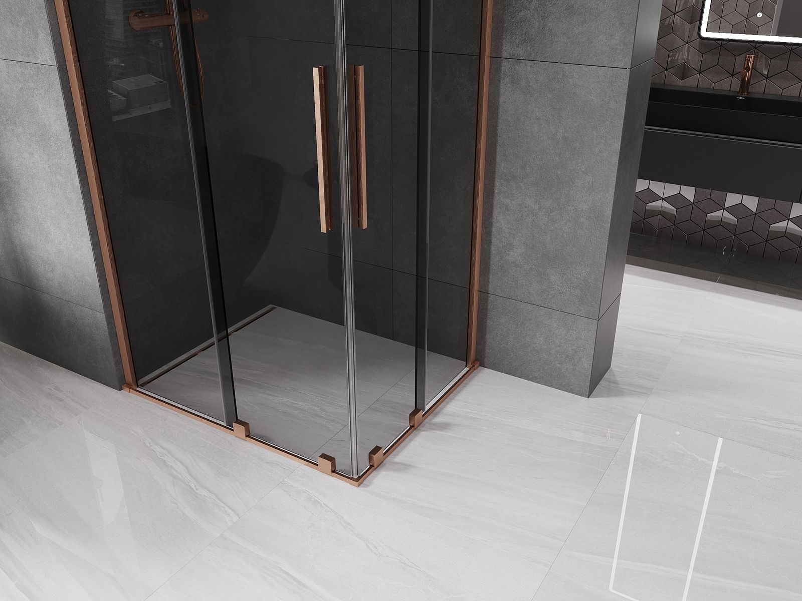 Mexen Velar Duo posuvná sprchová kabina 90 x 80 cm, grafit, kartáčovaná měď - 871-090-080-42-65