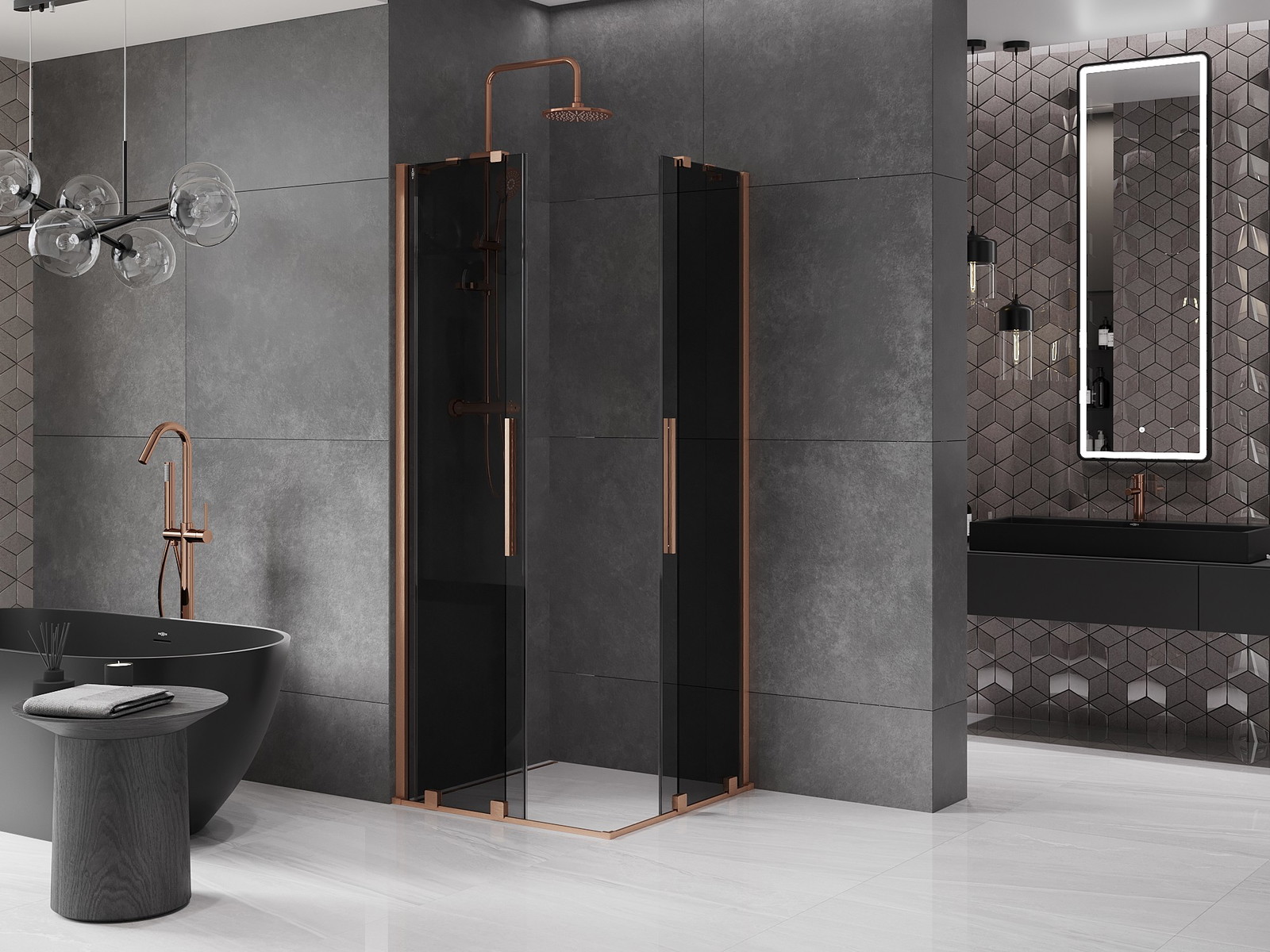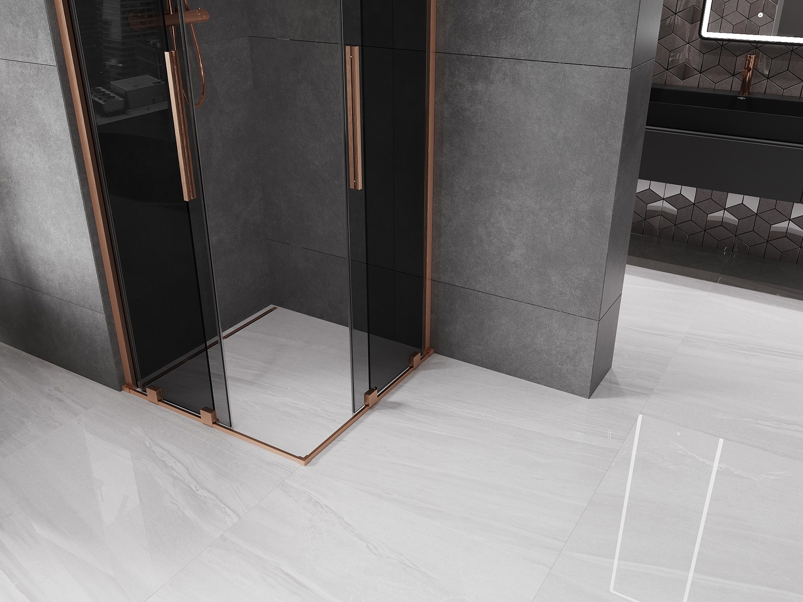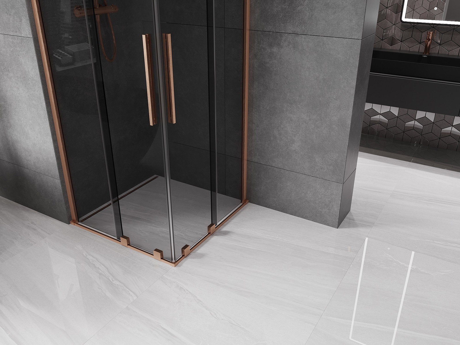 Mexen Velar Dvojitá posuvná sprchová kabina 100 x 100 cm, grafit, broušená měď - 871-100-100-42-65