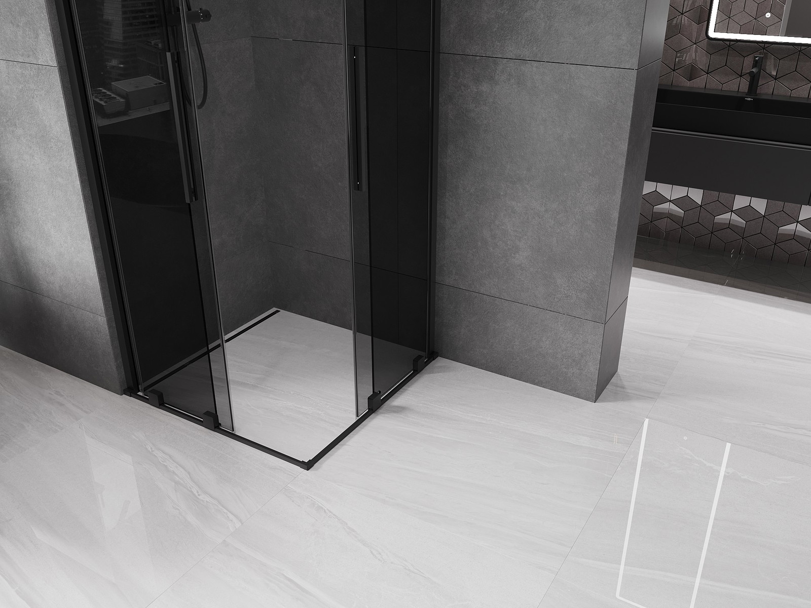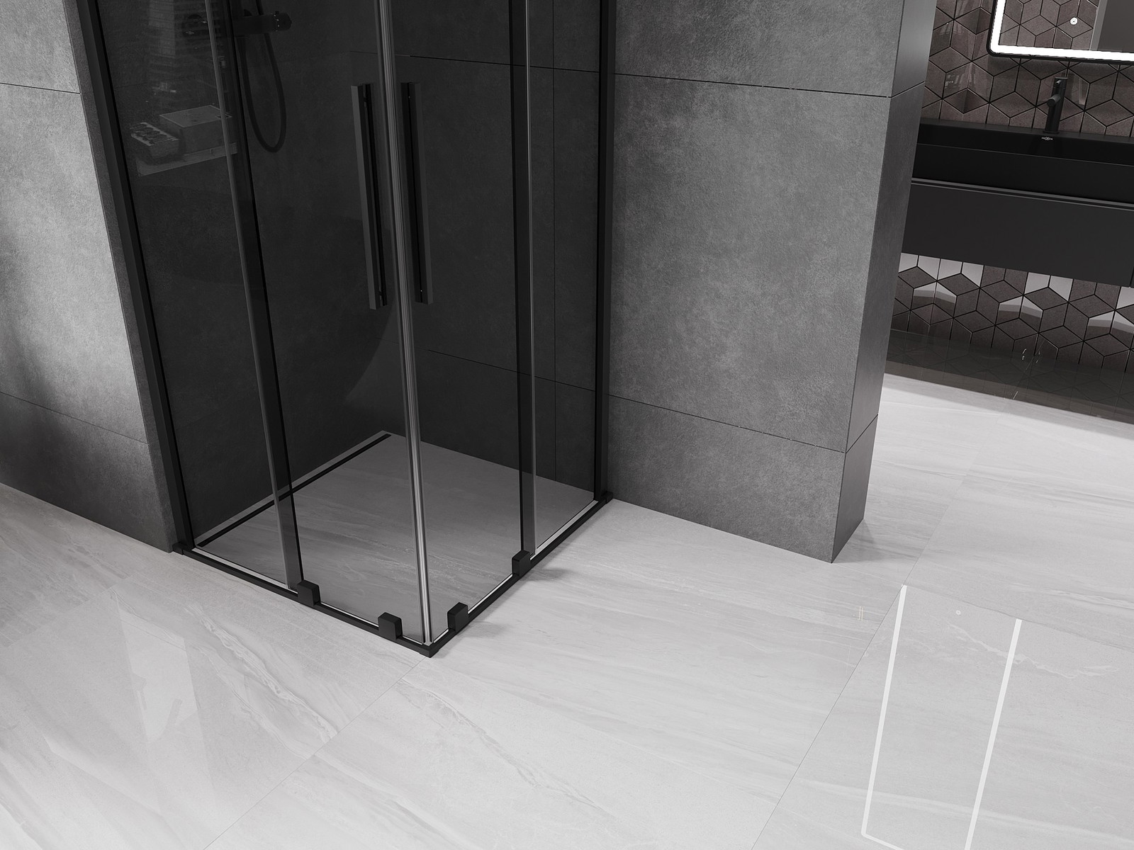 Mexen Velar Duo ohromuje moderním designem a funkčností, dokonale se hodí do moderní koupelny. Sprchová kabina o rozměrech 100 x 100 cm a výšce 200 cm je mimořádně praktická díky univerzální montáži a posuvným dveřím. Grafitové tvrzené sklo o tloušťce 8 mm s vrstvou usnadňující čištění a černá povrchová úprava jí dodávají eleganci. Hliníkový profil a ocelová rukojeť zajišťují trvanlivost, zatímco nastavení šířky a nivelace nerovností stěn zaručují snadnou instalaci.