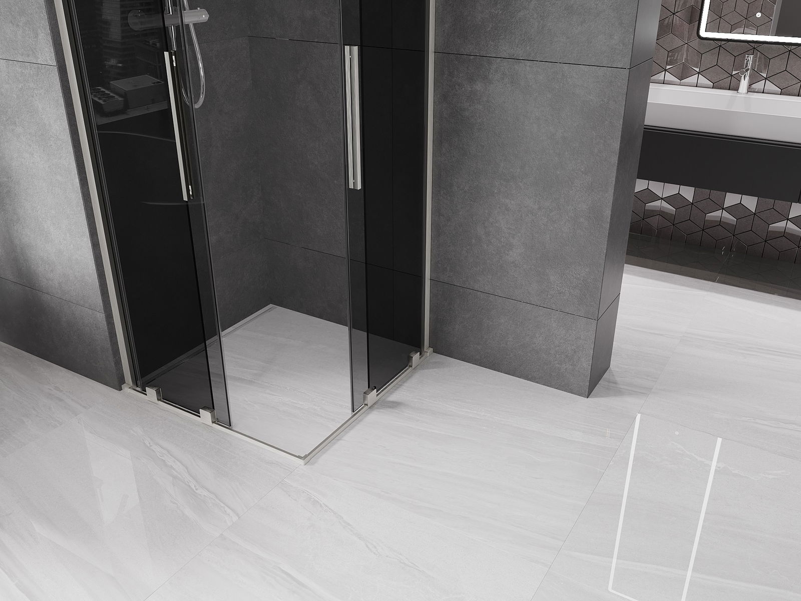 Produkt lze podle potřeby namontovat jak na sprchovou vaničku, tak přímo na podlahu. Univerzální způsob montáže umožňuje přizpůsobení produktu různým typům koupelen a konfiguracím prostor.