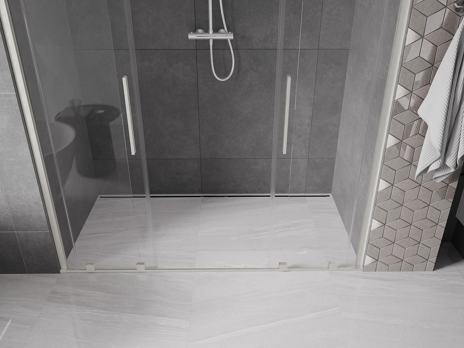 Díky použití univerzálního montážního systému mohou být sprchové dveře namontovány na pravé nebo levé straně, podle potřeby. Díky tomu můžete snadno navrhnout sprchu přizpůsobenou prostoru koupelny.