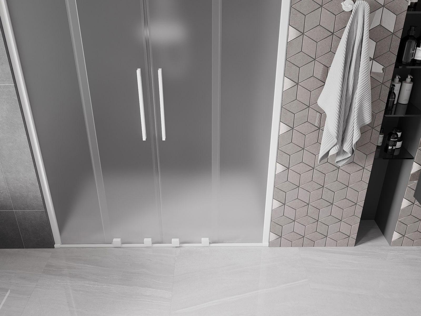 Praktický a pohodlný držák je vyroben z nerezové oceli. Moderní tvar ve spojení s povrchovou úpravou sladěnou s barvou profilů dodává celku moderní a stylový vzhled, zdůrazňující estetiku každé koupelny.
