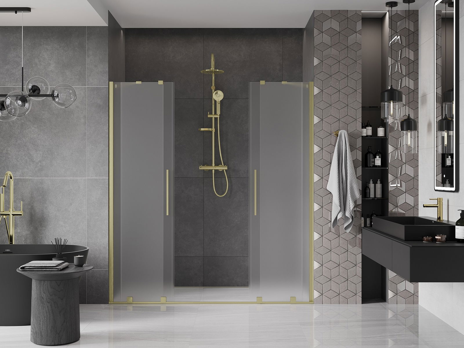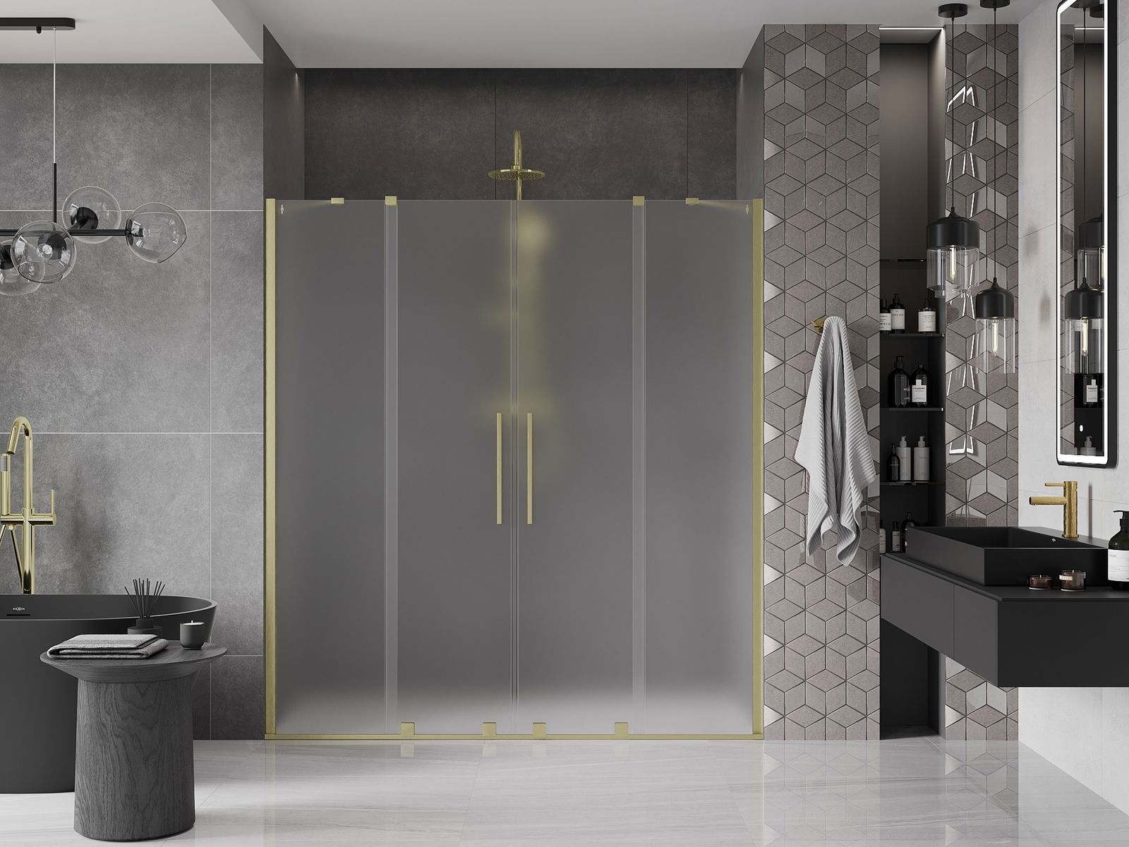 Mexen Velar Duo posuvné sprchové dveře 180 cm, námrazové, zlaté kartáčované - 871-180-000-32-55