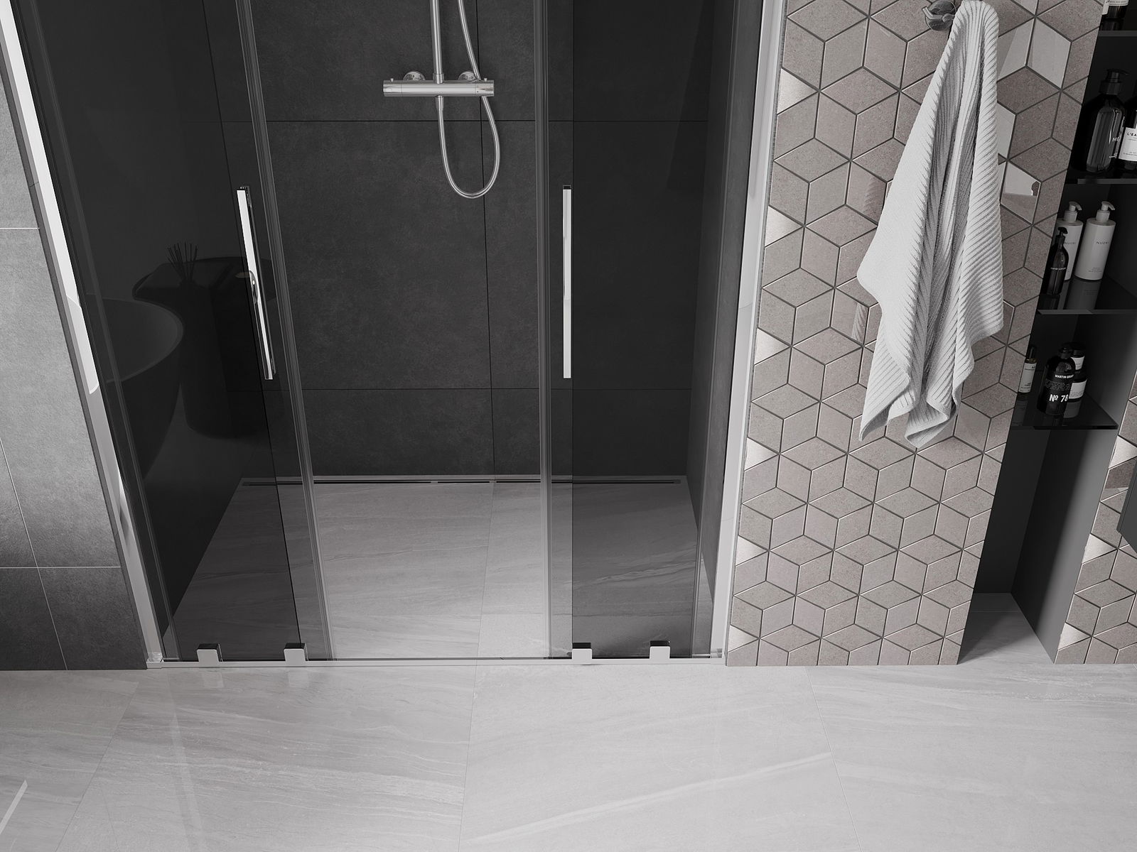 Praktický a pohodlný držák je vyroben z nerezové oceli. Moderní tvar ve spojení s povrchovou úpravou sladěnou s barvou profilů dodává celku moderní a stylový vzhled, zdůrazňující estetiku každé koupelny.