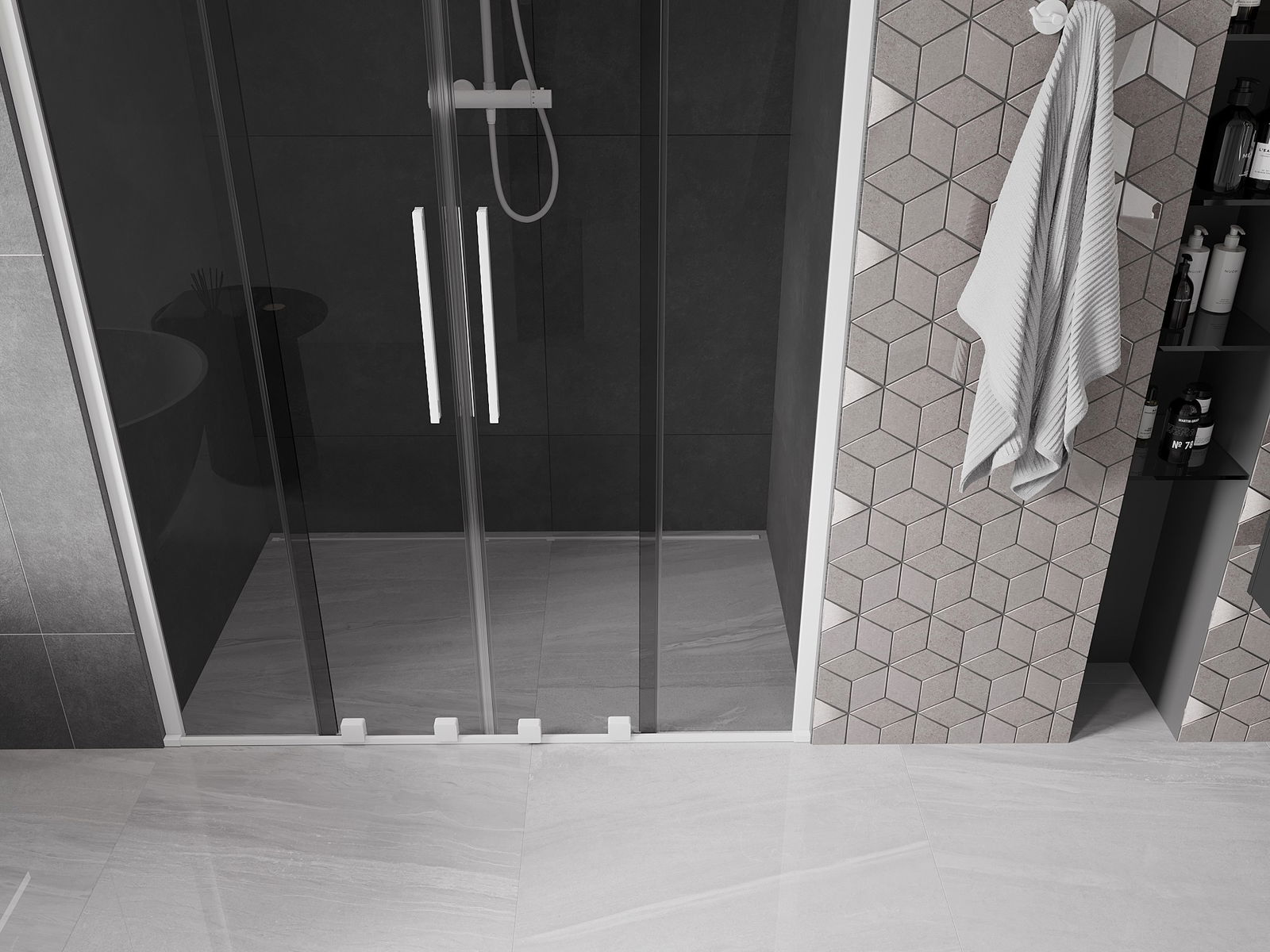 Praktický a pohodlný držák je vyroben z nerezové oceli. Moderní tvar ve spojení s povrchovou úpravou sladěnou s barvou profilů dodává celku moderní a stylový vzhled, zdůrazňující estetiku každé koupelny.