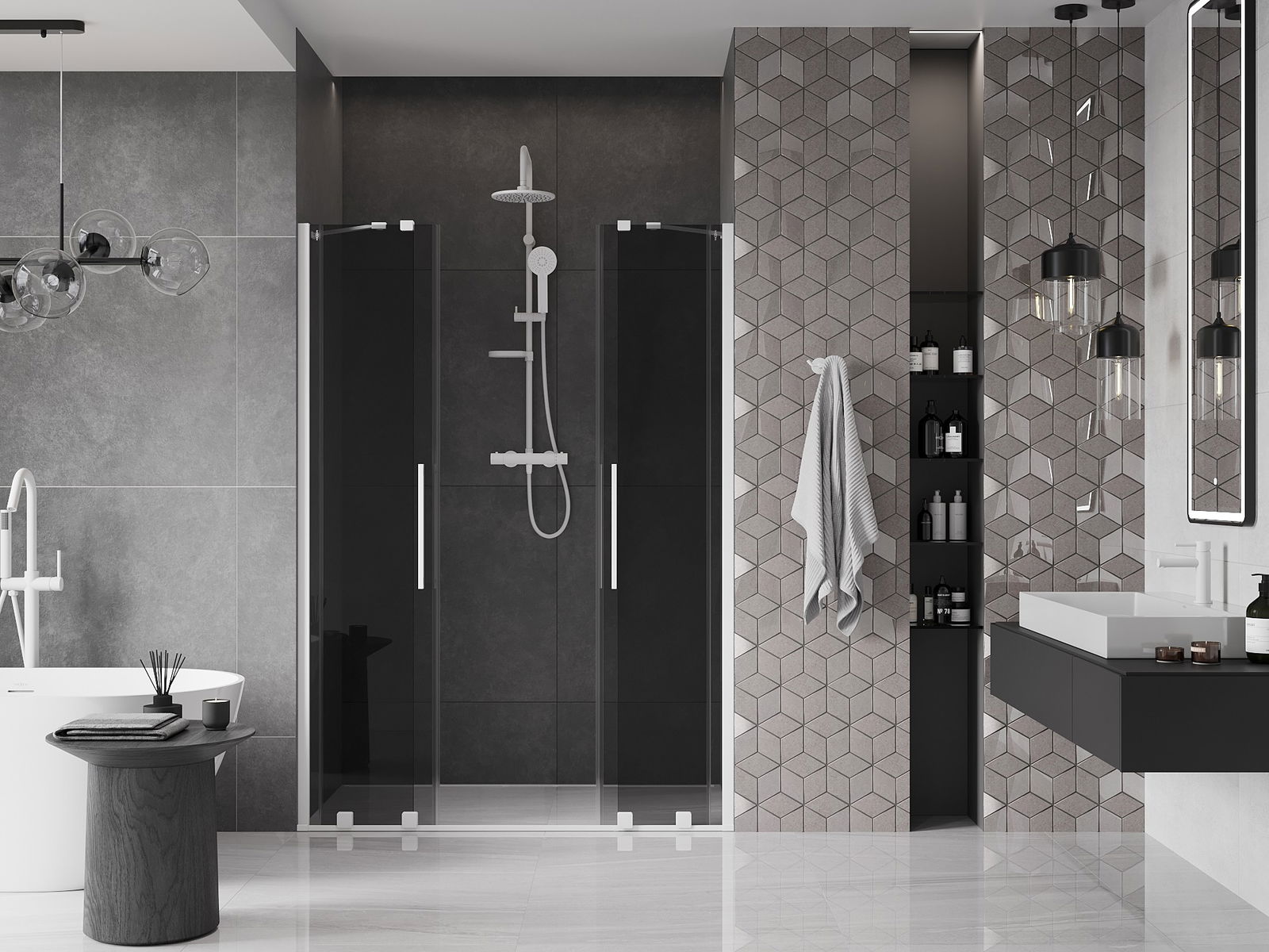 Mexen Velar Duo posuvné sprchové dveře 140 cm, grafit, bílé - 871-140-000-42-20