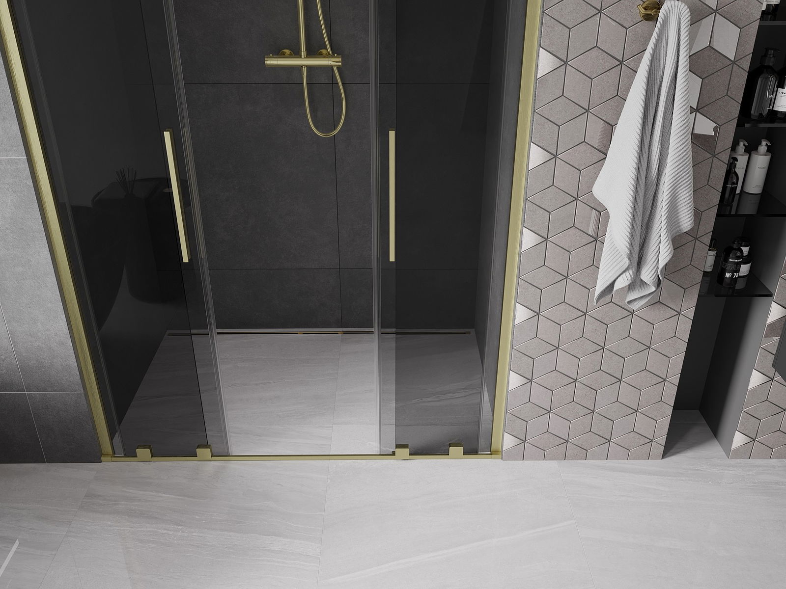 Mexen Velar Duo sprchové dveře posuvné 150 cm, grafitové, zlaté kartáčované - 871-150-000-42-55