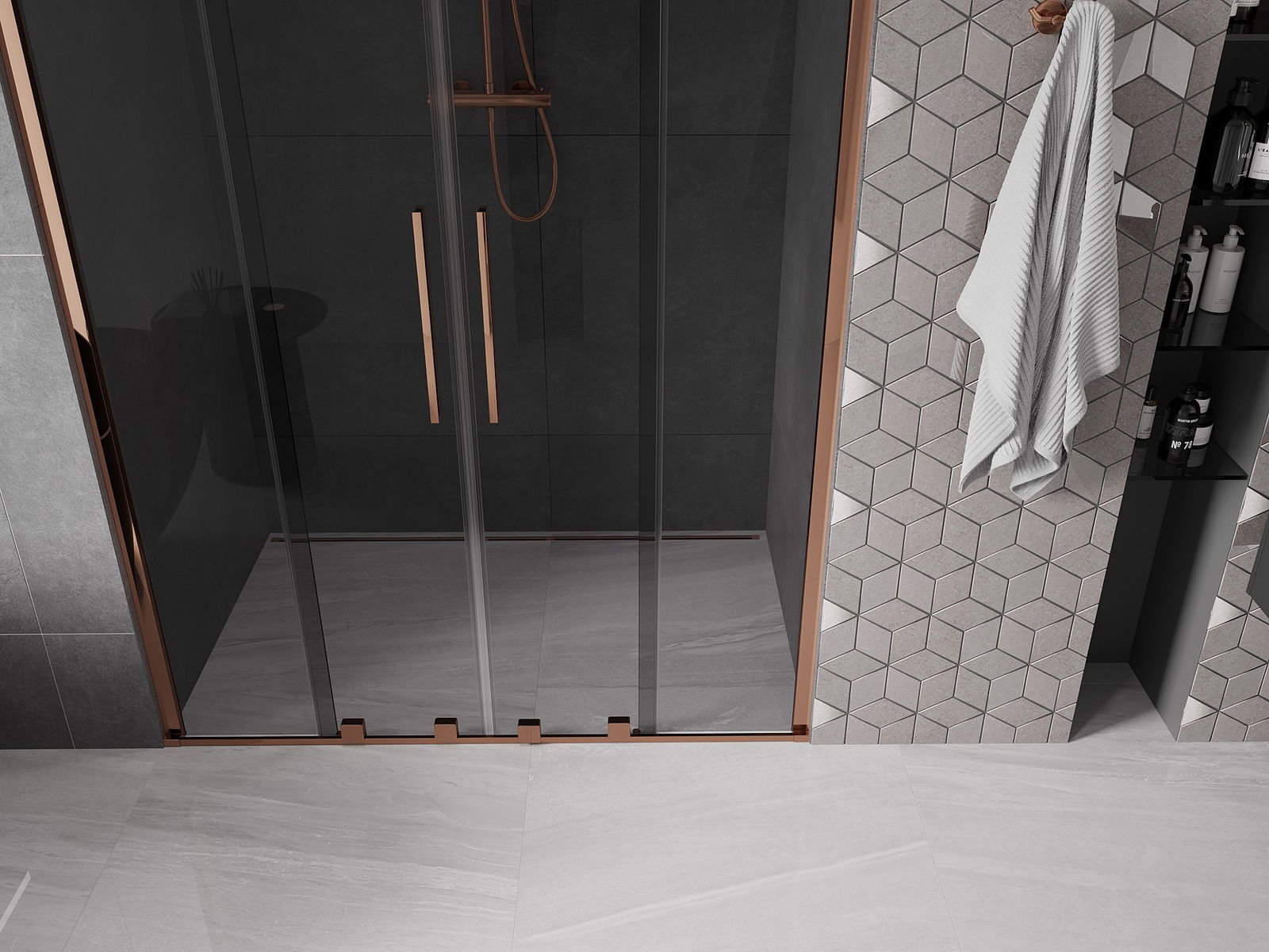 Mexen Velar Duo sprchové dveře posuvné 160 cm, grafit, růžové zlato - 871-160-000-42-60