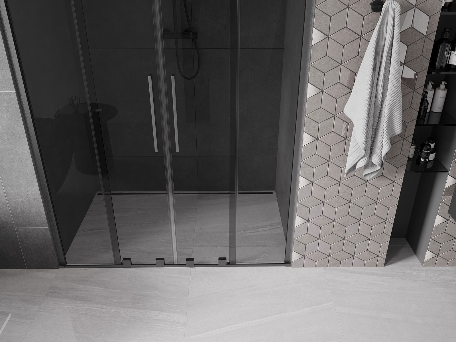 Praktický a pohodlný držák je vyroben z nerezové oceli. Moderní tvar ve spojení s povrchovou úpravou sladěnou s barvou profilů dodává celku moderní a stylový vzhled, zdůrazňující estetiku každé koupelny.