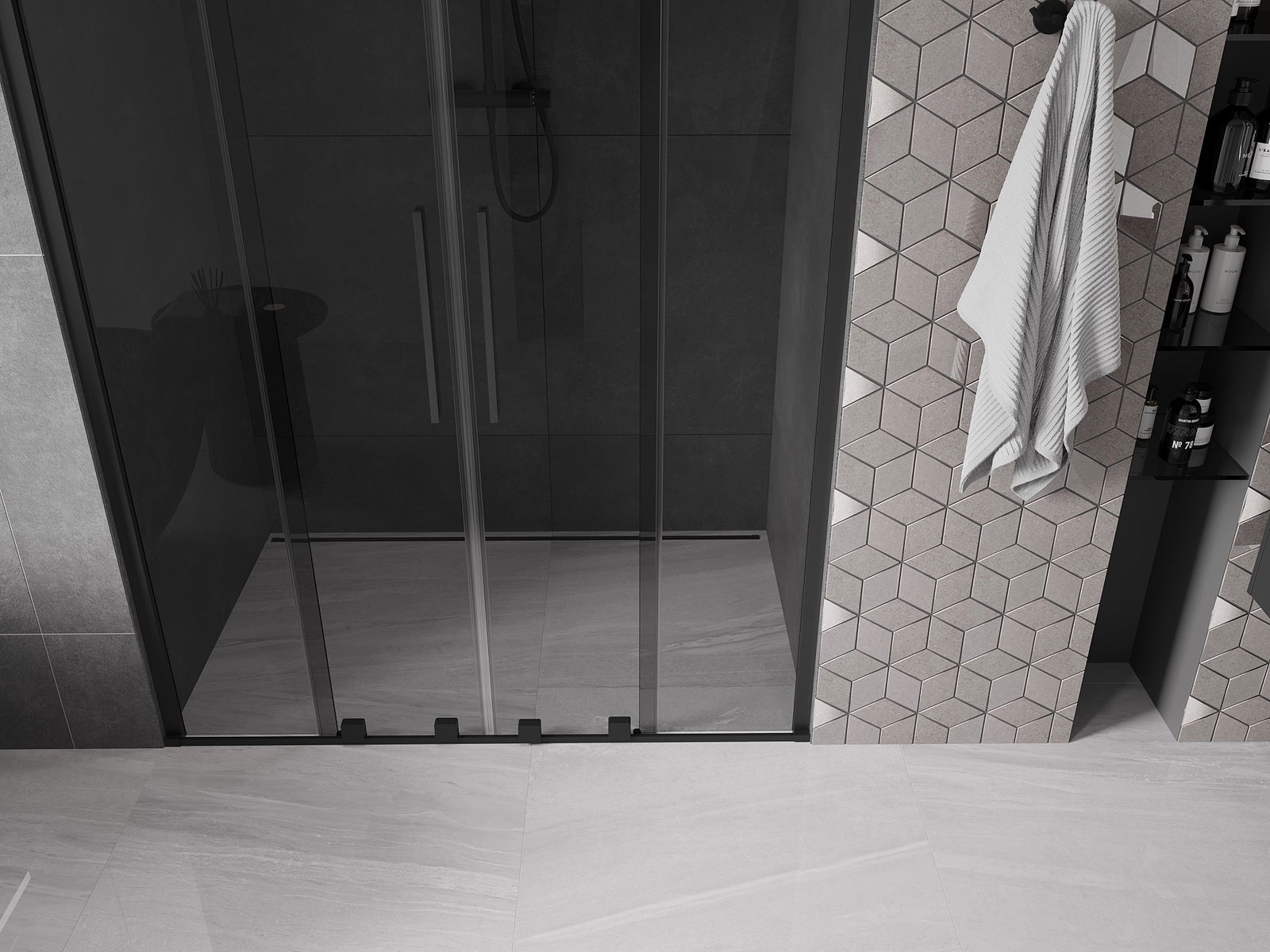 Praktický a pohodlný držák je vyroben z nerezové oceli. Moderní tvar ve spojení s povrchovou úpravou sladěnou s barvou profilů dodává celku moderní a stylový vzhled, zdůrazňující estetiku každé koupelny.