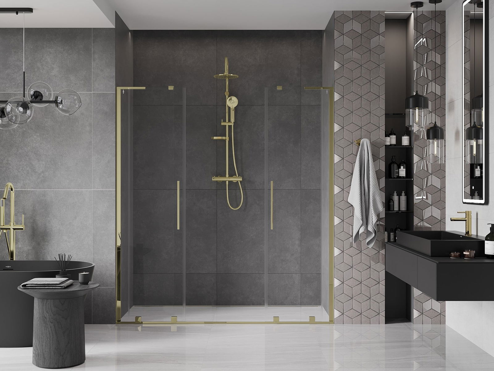Mexen Velar L Duo posuvné sprchové dveře 180 cm, průhledné, zlaté - 871-180-003-02-50