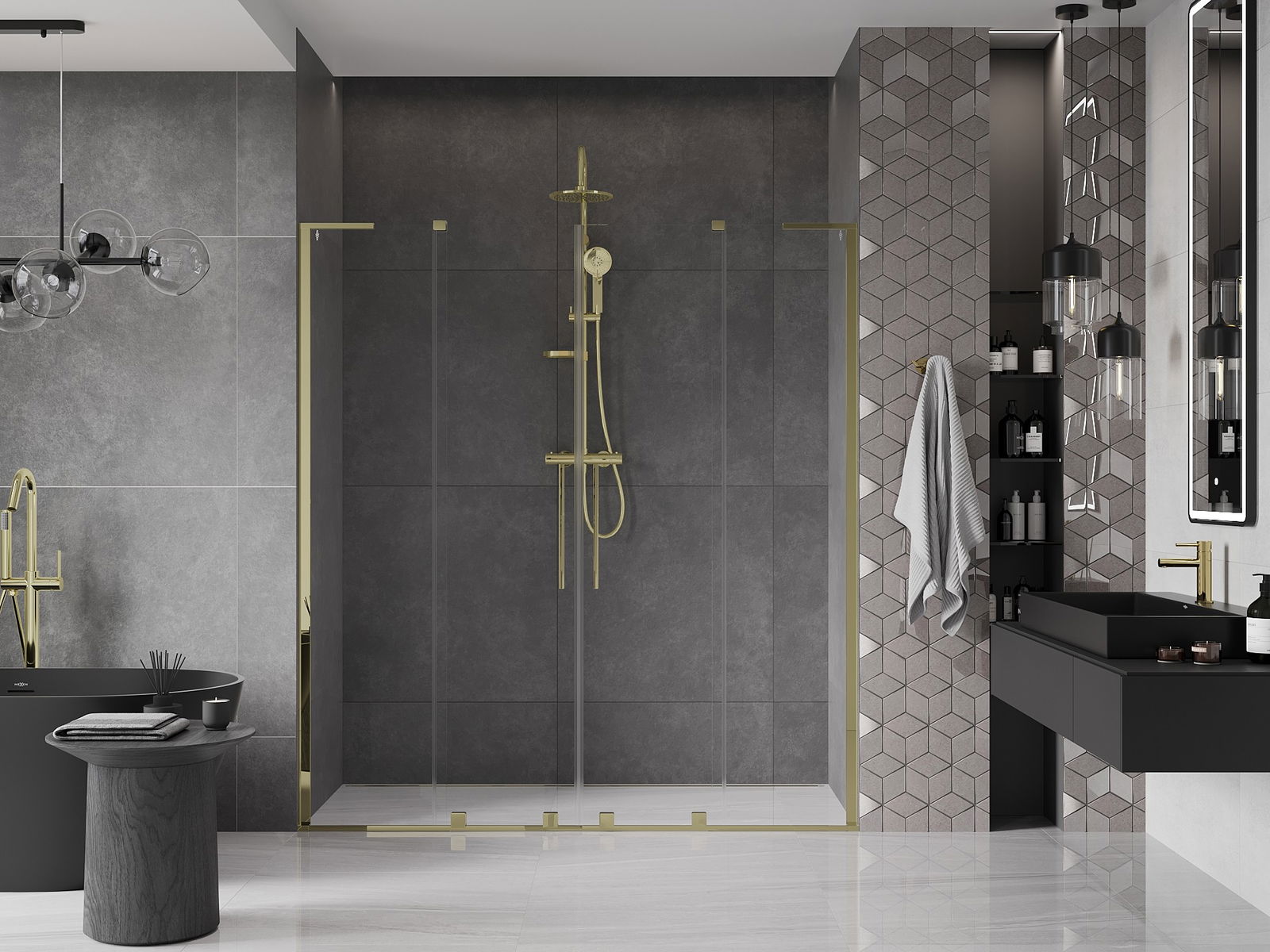 Mexen Velar L Duo posuvné sprchové dveře 200 cm, transparentní, zlaté - 871-200-003-02-50