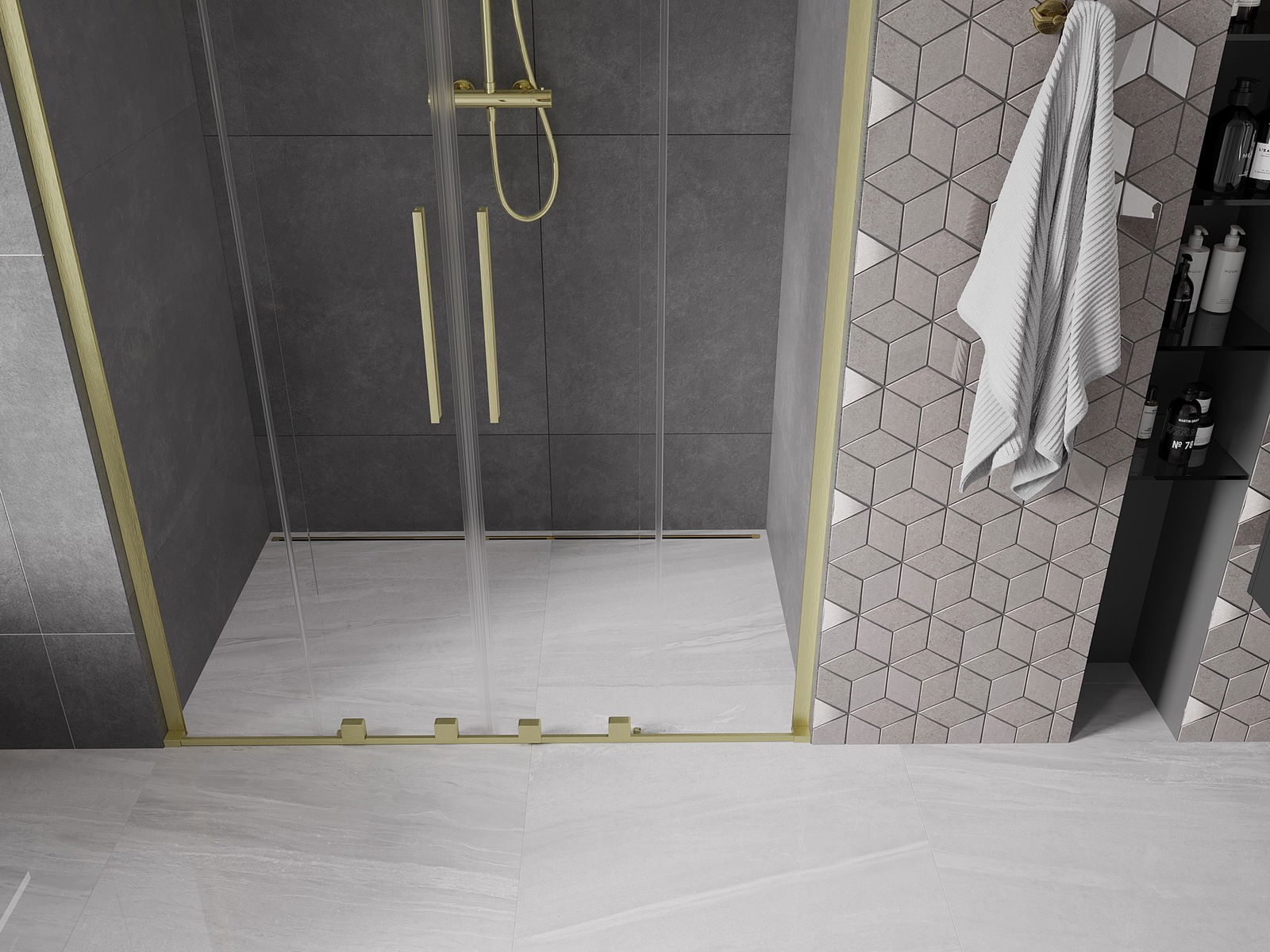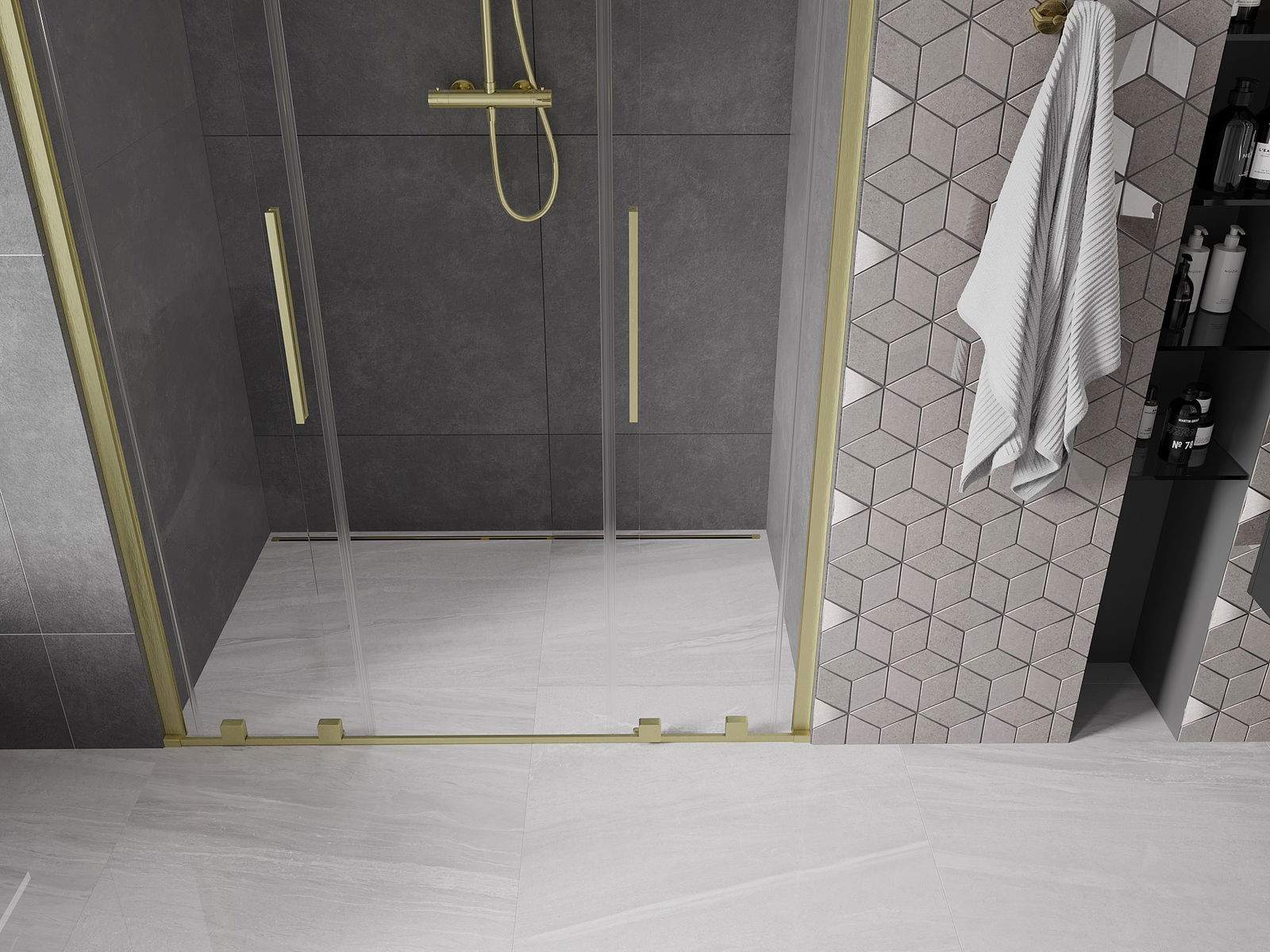 Mexen Velar L Duo sprchové dveře posuvné 150 cm, průhledné, zlaté kartáčované - 871-150-003-02-55