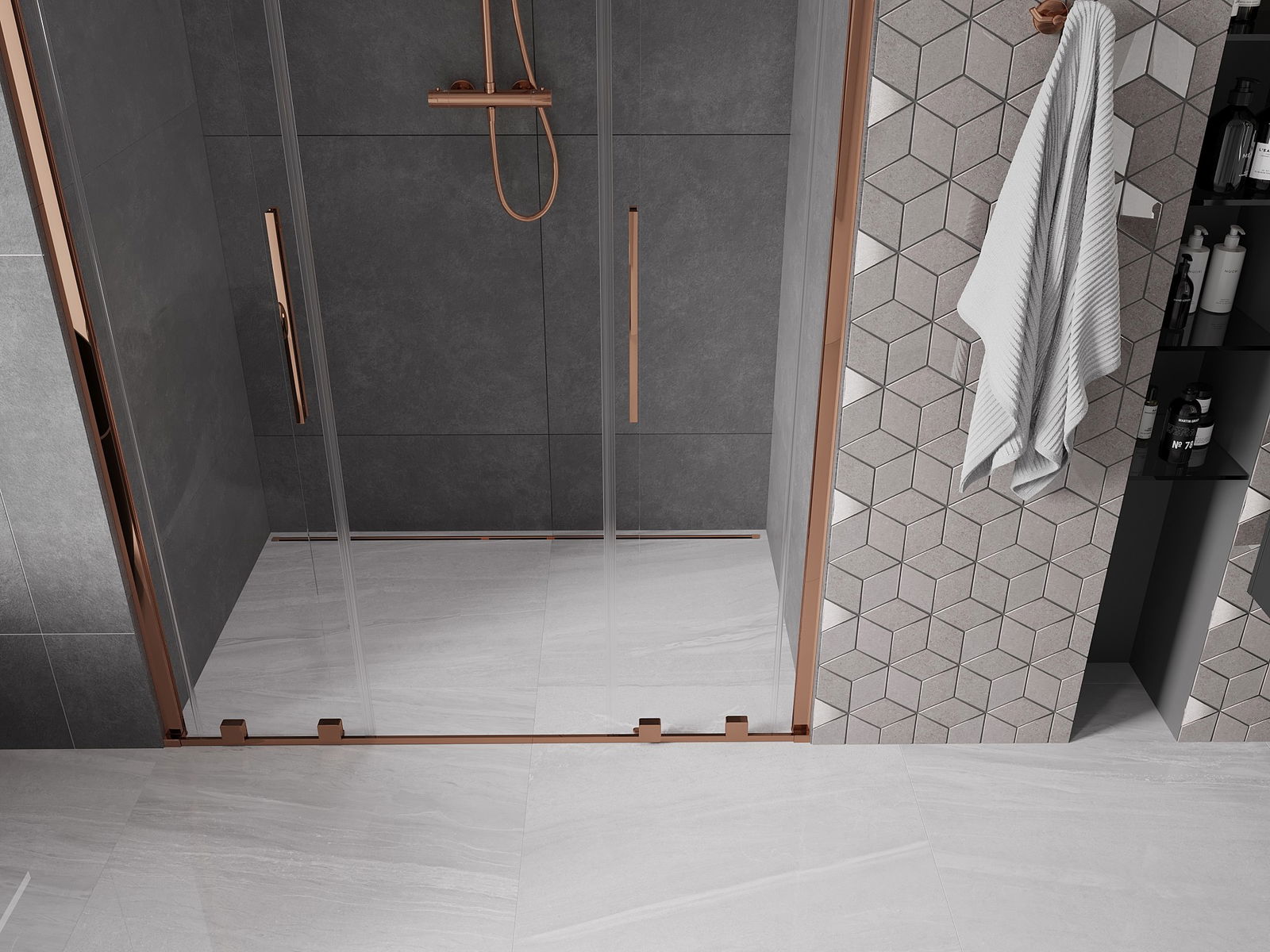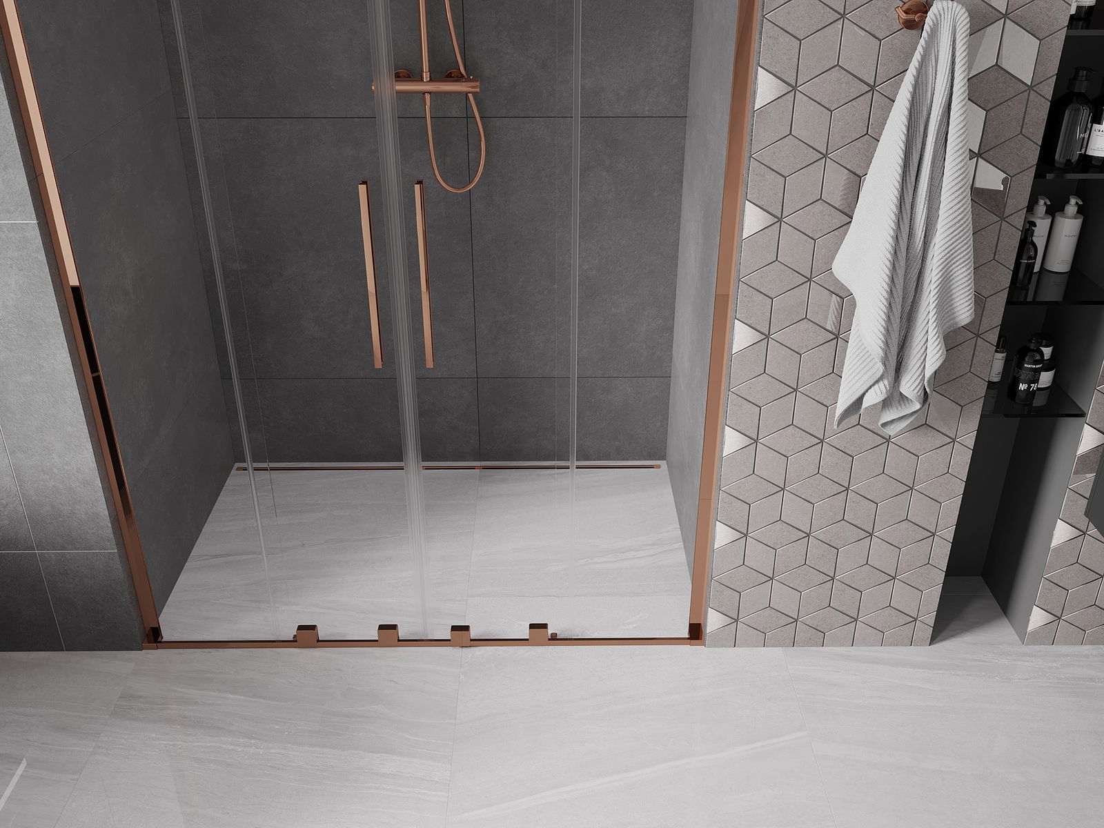 Mexen Velar L Duo posuvné sprchové dveře 140 cm, transparentní, růžové zlato - 871-140-003-02-60