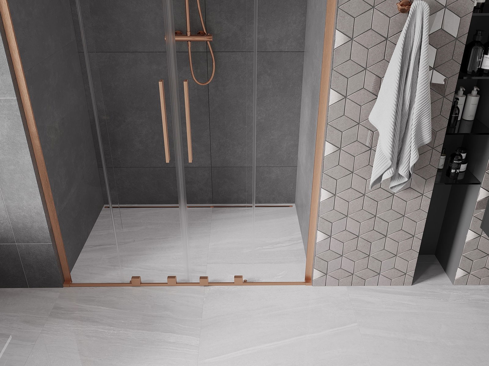 Mexen Velar L Duo sprchové dveře posuvné 140 cm, průhledné, kartáčovaná měď - 871-140-003-02-65