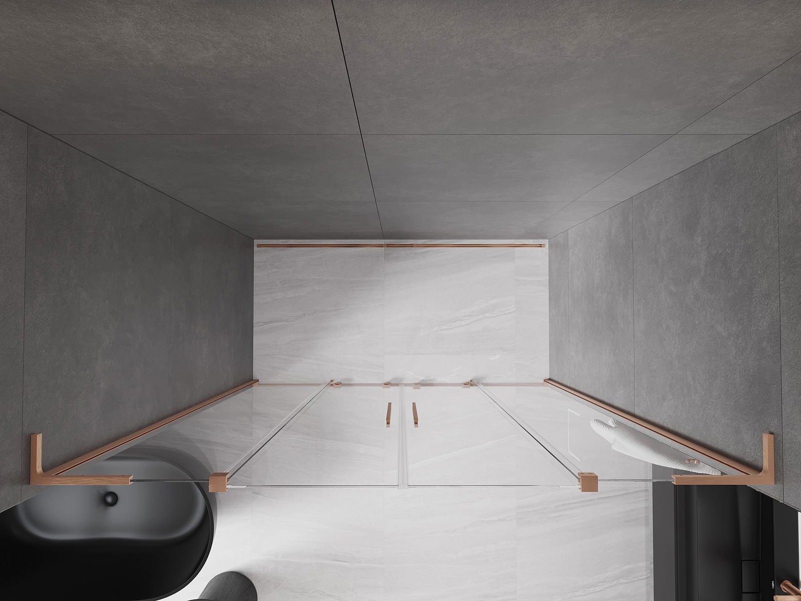 Mexen Velar L Duo sprchové dveře posuvné 180 cm, transparentní, kartáčovaná měď - 871-180-003-02-65