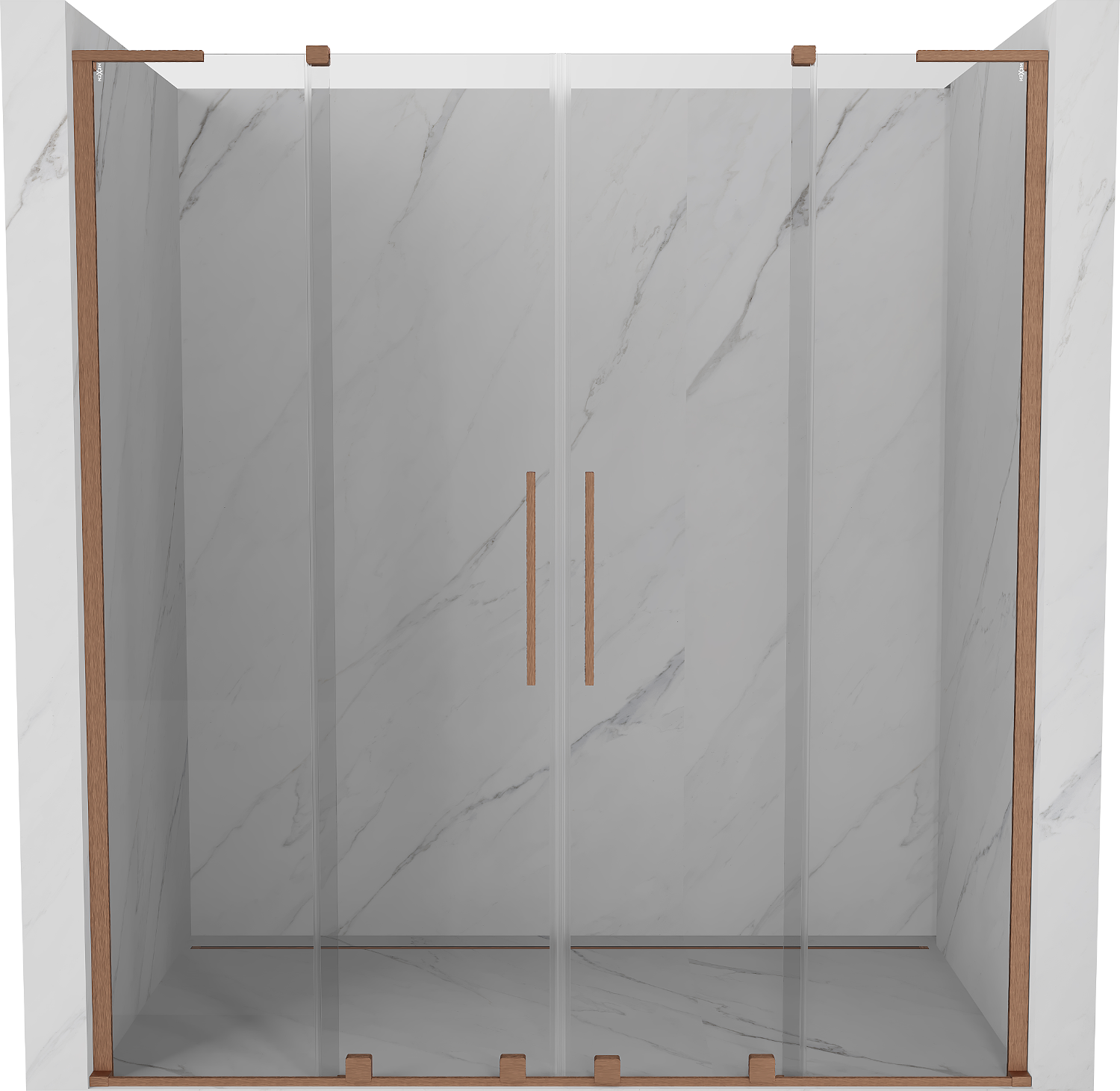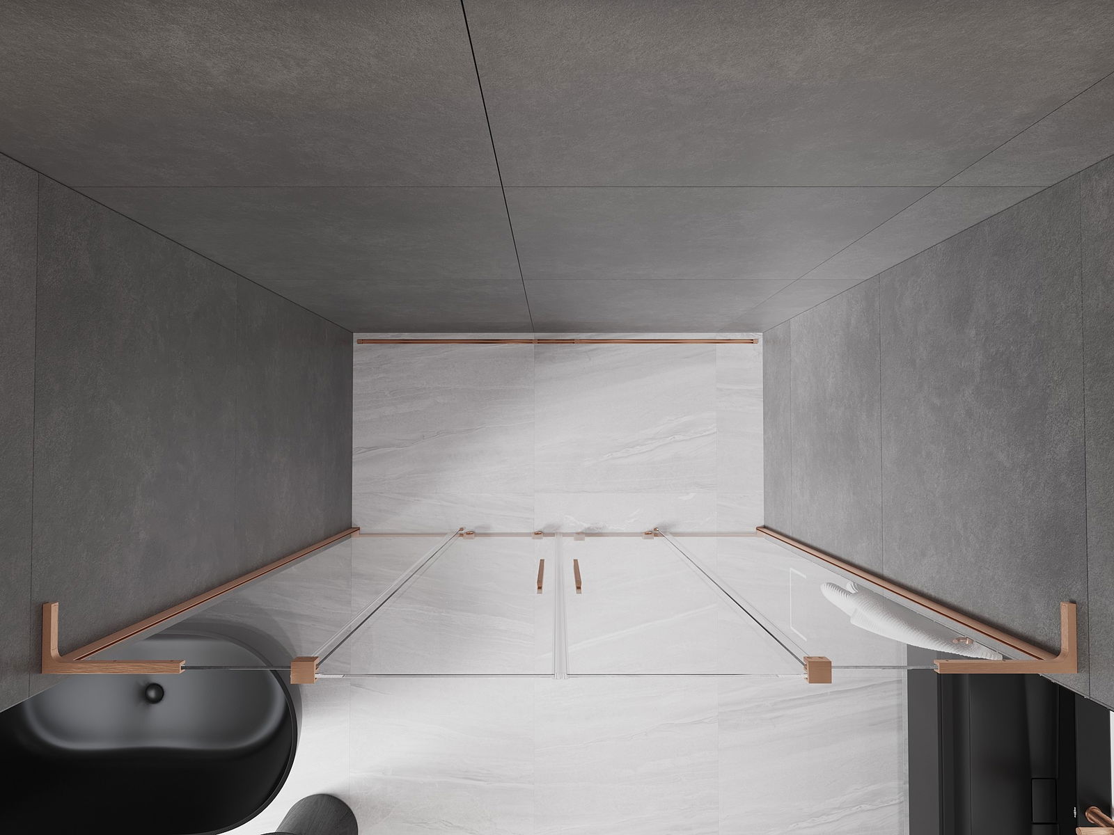 Mexen Velar L Duo posuvné sprchové dveře 200 cm, transparentní, kartáčovaná měď - 871-200-003-02-65