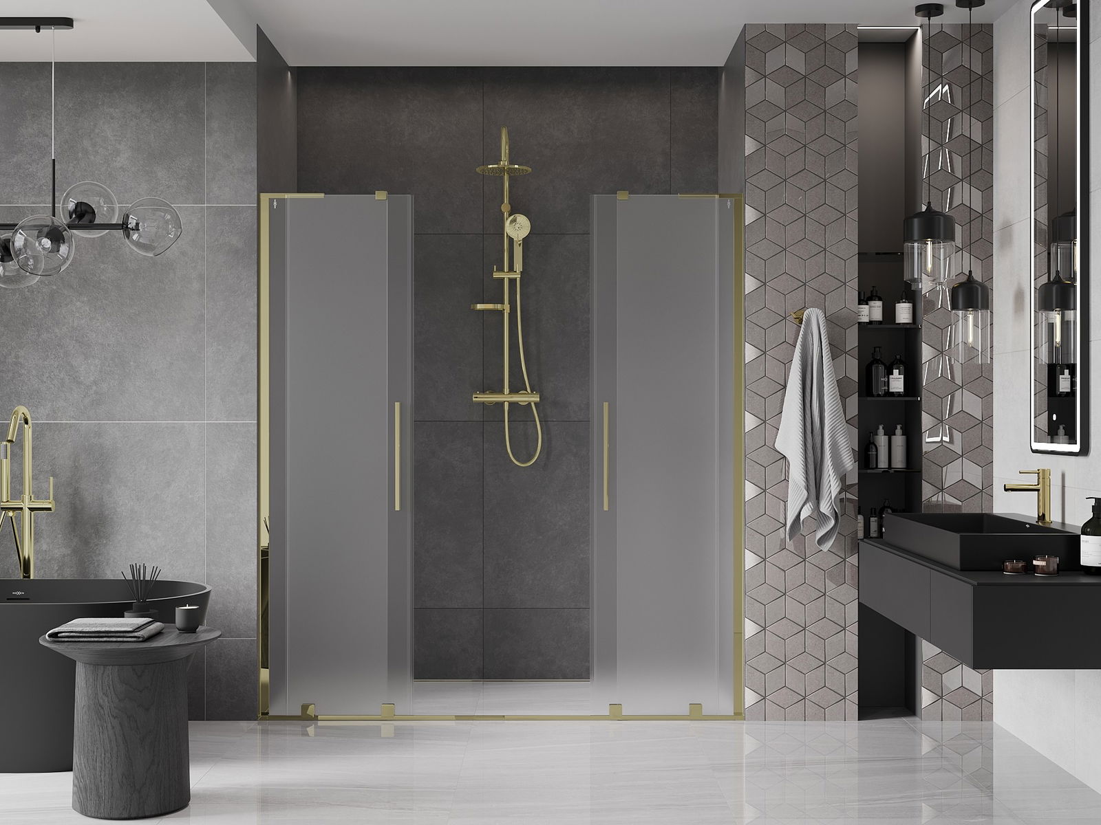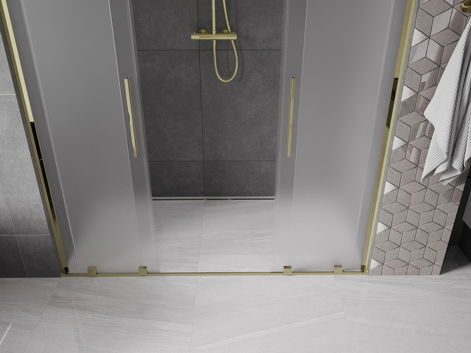 Mexen Velar L Duo posuvné sprchové dveře 200 cm, matný, zlatý - 871-200-003-32-50