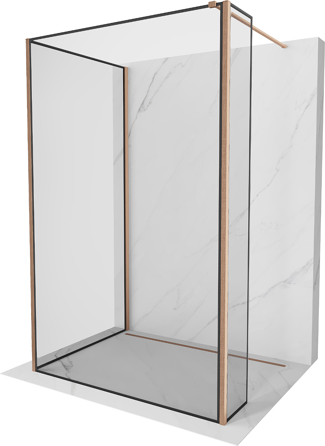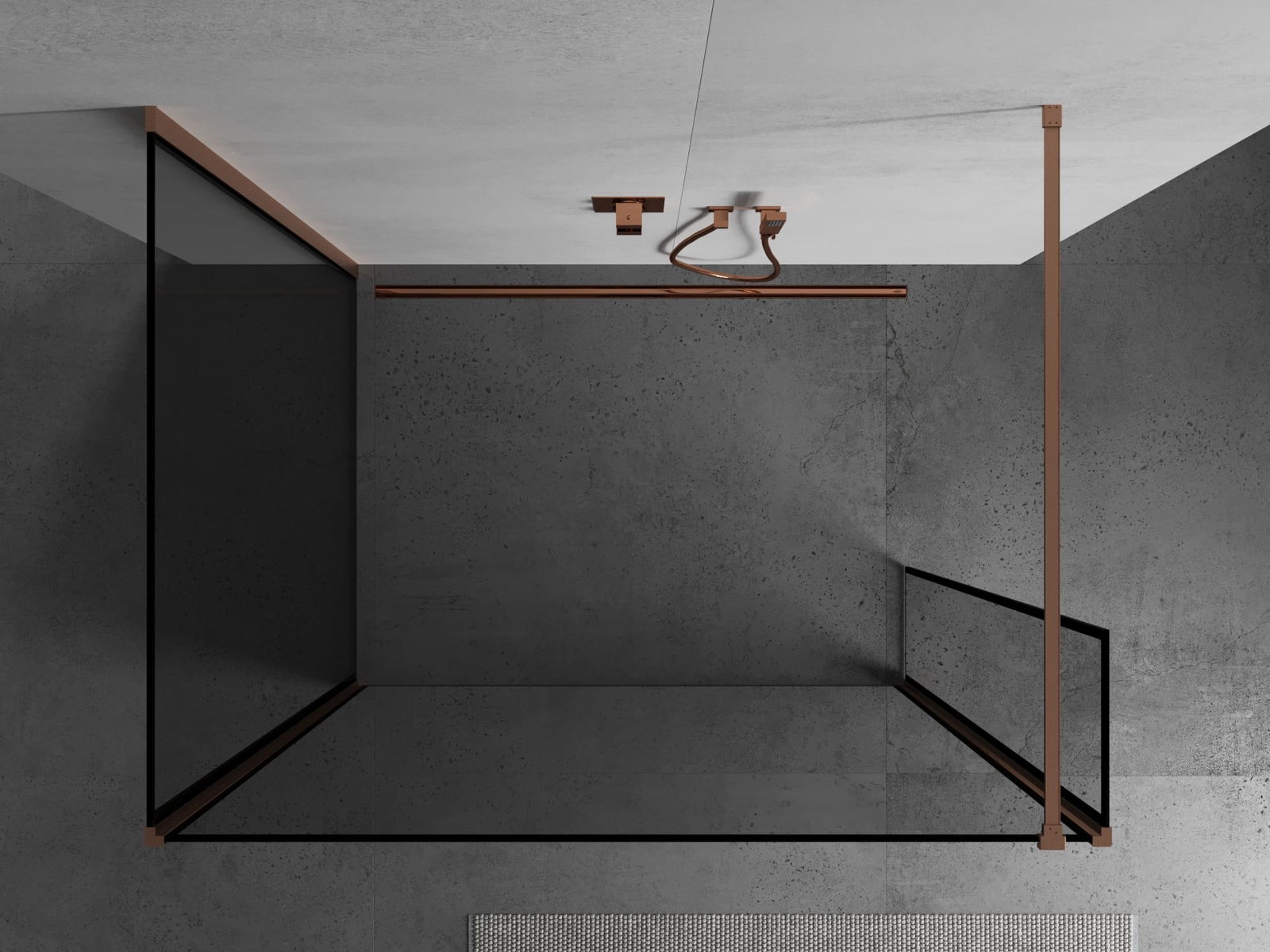 Mexen Kioto sprchová stěna Walk-in 130 x 80 x 30 cm, černý rámeček, kartáčovaná měď - 800-130-080-221-65-70-030