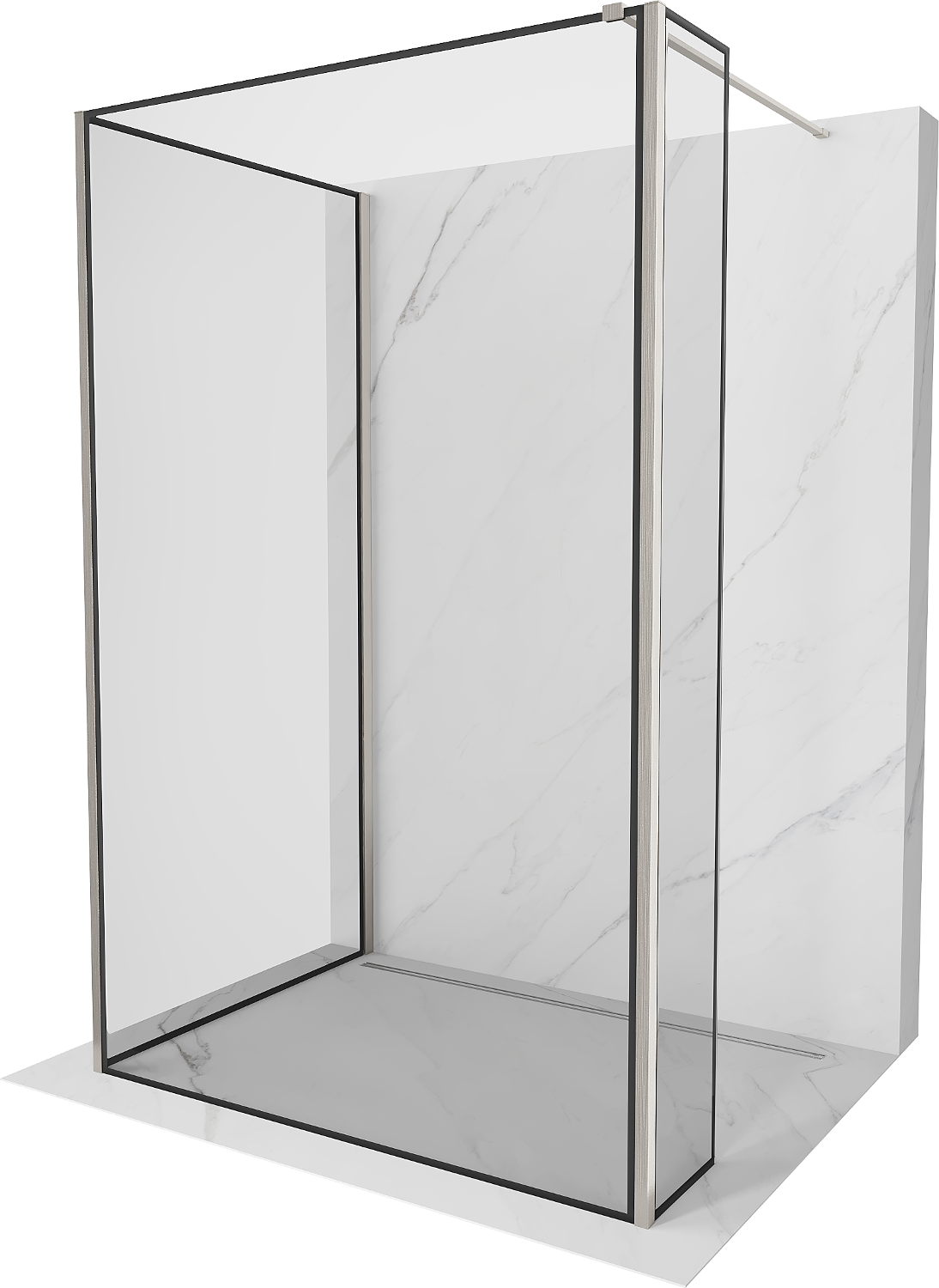 Mexen Kioto sprchová stěna Walk-in 140 x 70 x 30 cm, černý rám, kartáčovaný nikl - 800-140-070-221-97-70-030