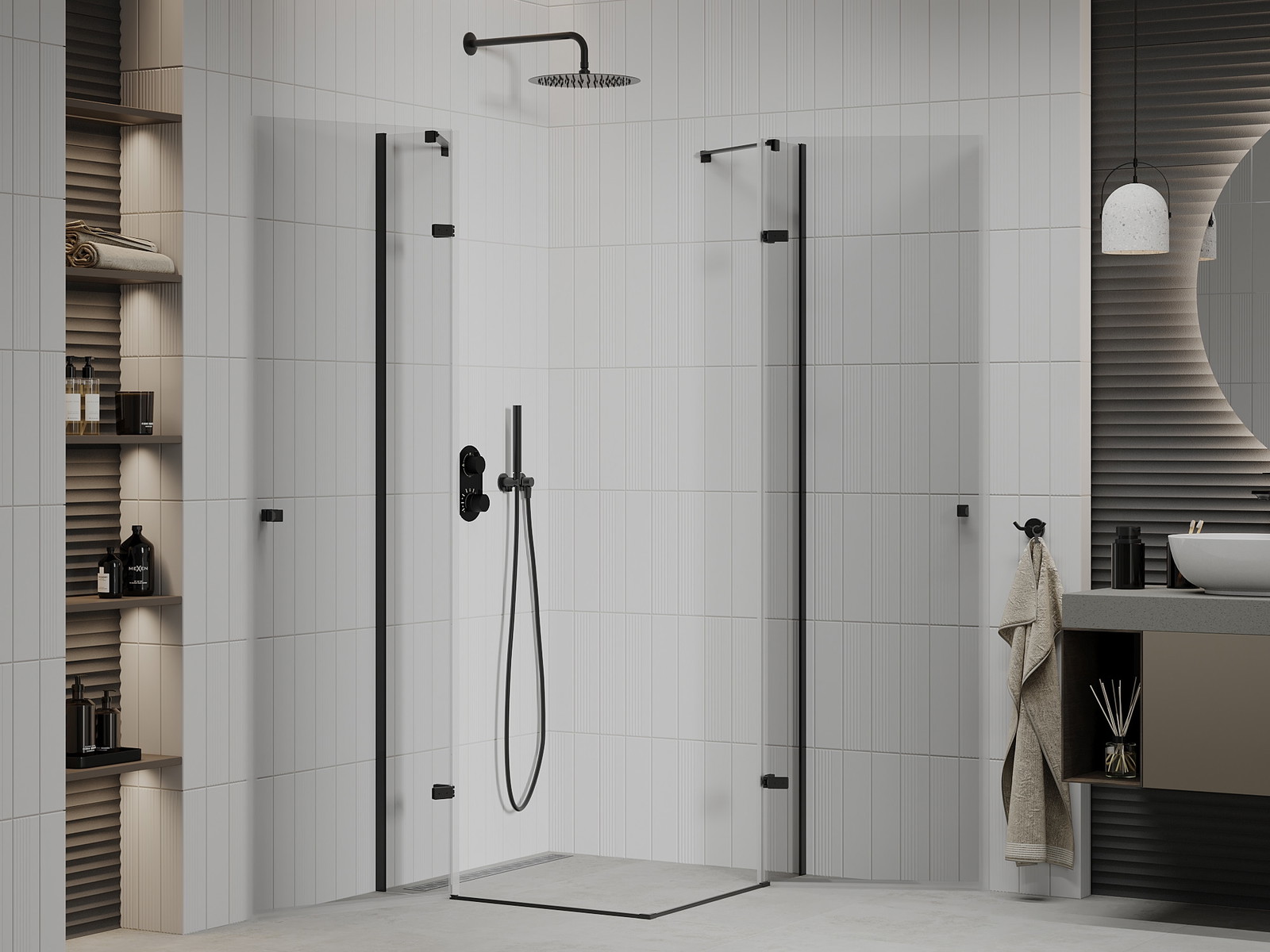 Mexen Roma Dvojitá sprchová kabina otevíratelná 80 x 80 cm, transparentní, černá - 854-080-080-70-00-02