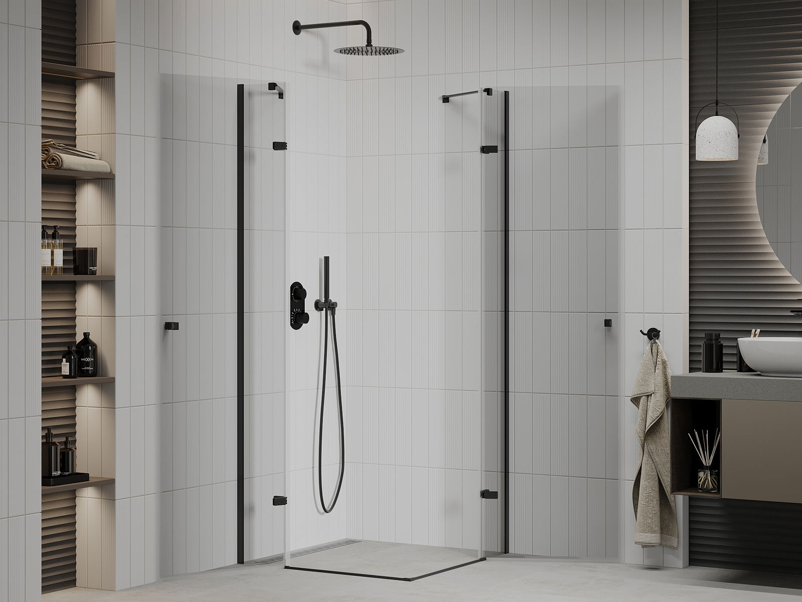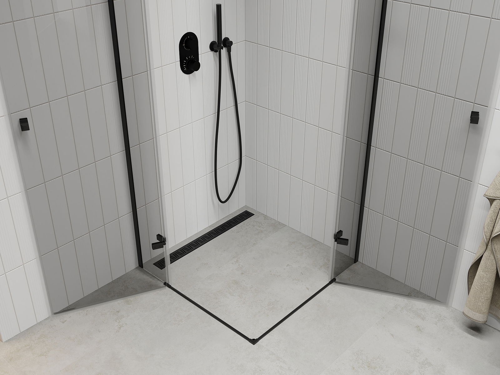 Praktická a pohodlná rukojeť je vyrobena z odolného a trvanlivého kovu. Moderní tvar ve spojení s povrchovou úpravou, která ladí s barvou profilů, dodává celku moderní a stylový vzhled, zdůrazňující estetiku každé koupelny.