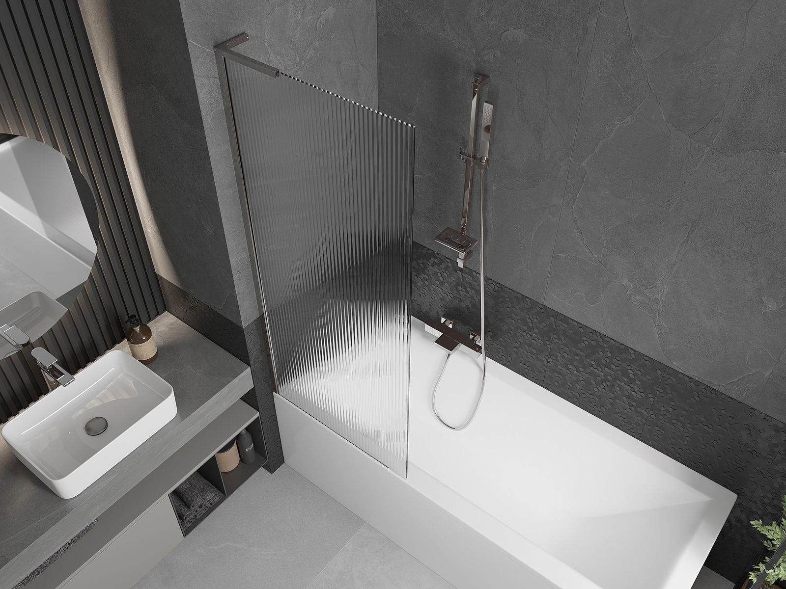 Účinná ochrana před rozléváním vody během koupání. Paraván má těsnění, která se ideálně přizpůsobují skleněné desce a okraji vany. Funkční řešení zajišťující bezpečnost a snadnou údržbu čistoty.