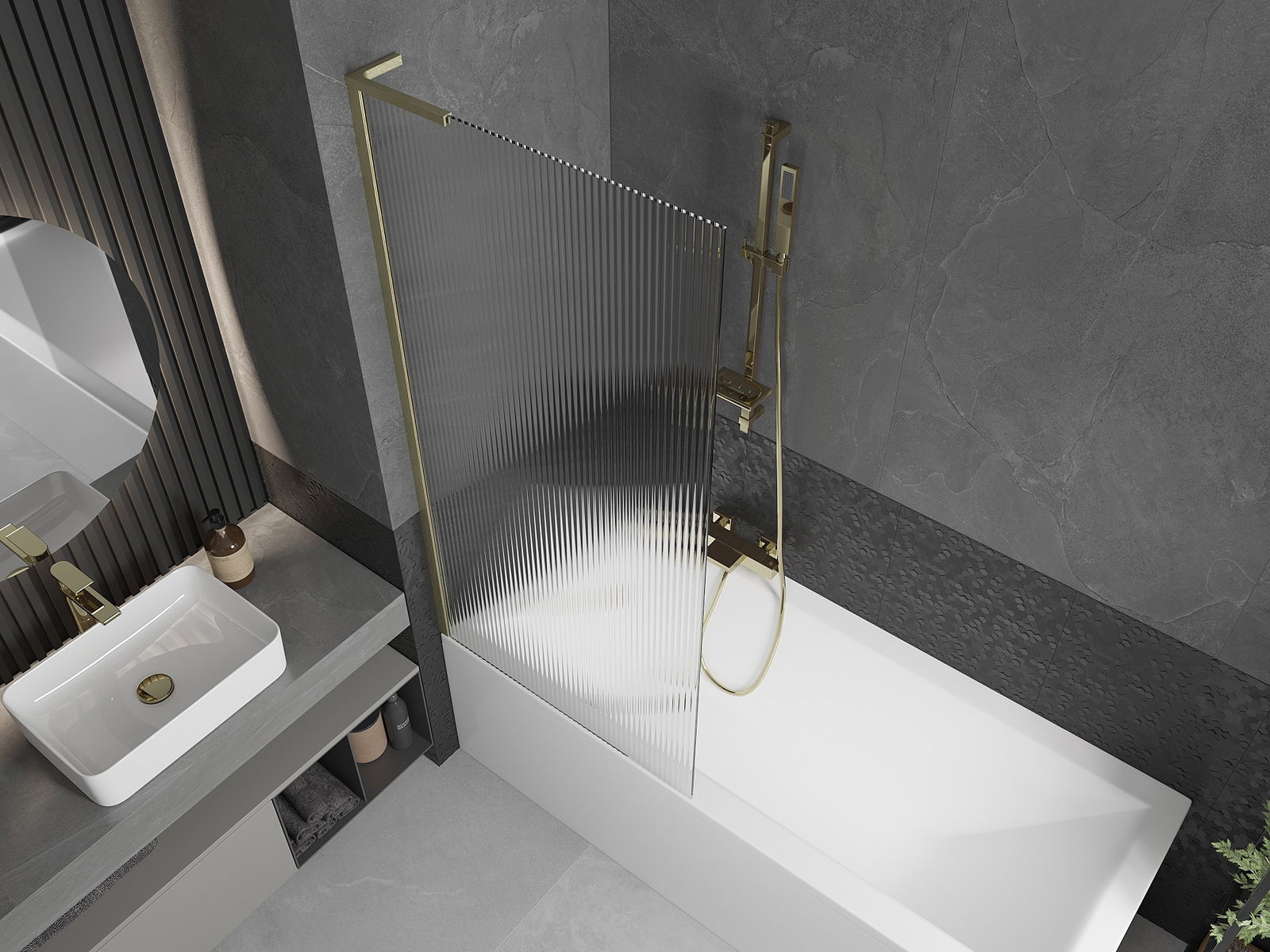 Mexen Next L vanová zástěna jednokřídlá 80 x 150 cm, pruhy, zlatá kartáčovaná - 895-080-000-03-09-55