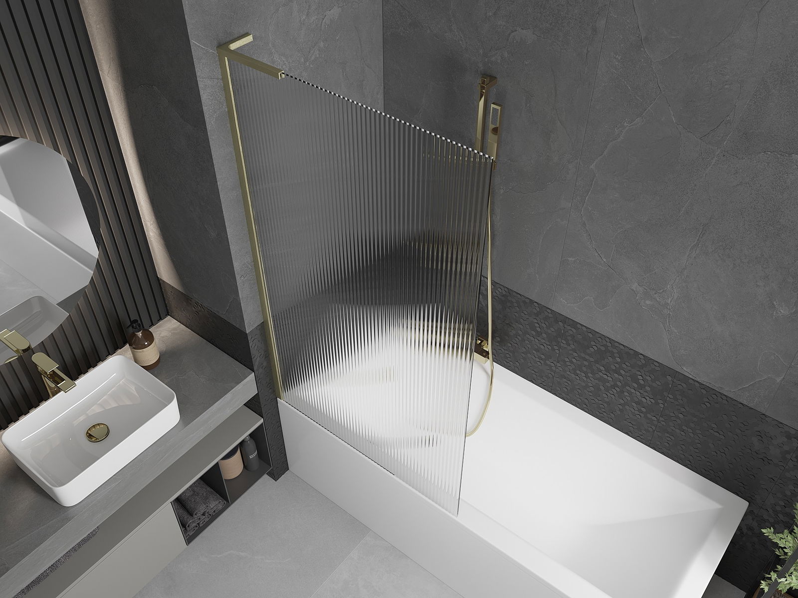 Mexen Next L vanová zástěna 1-křídlová 90 x 150 cm, pruhy, zlatá kartáčovaná - 895-090-000-03-09-55