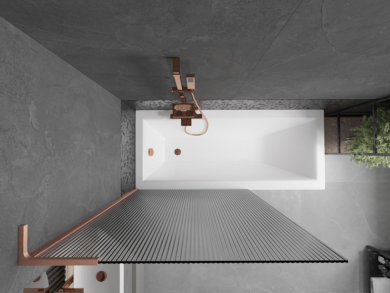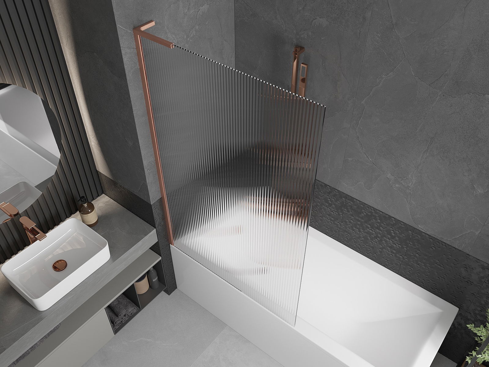 Mexen Next L vanová zástěna jednokřídlá 100 x 150 cm, proužky, kartáčovaná měď - 895-100-000-03-09-65