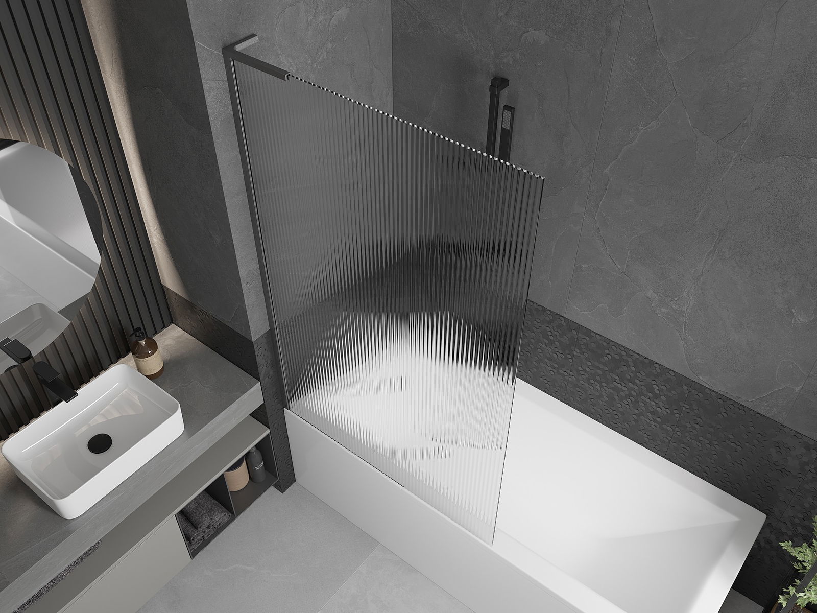 Mexen Next L vanová zástěna jednokřídlá 100 x 150 cm, proužky, kartáčovaná gun gray - 895-100-000-03-09-66