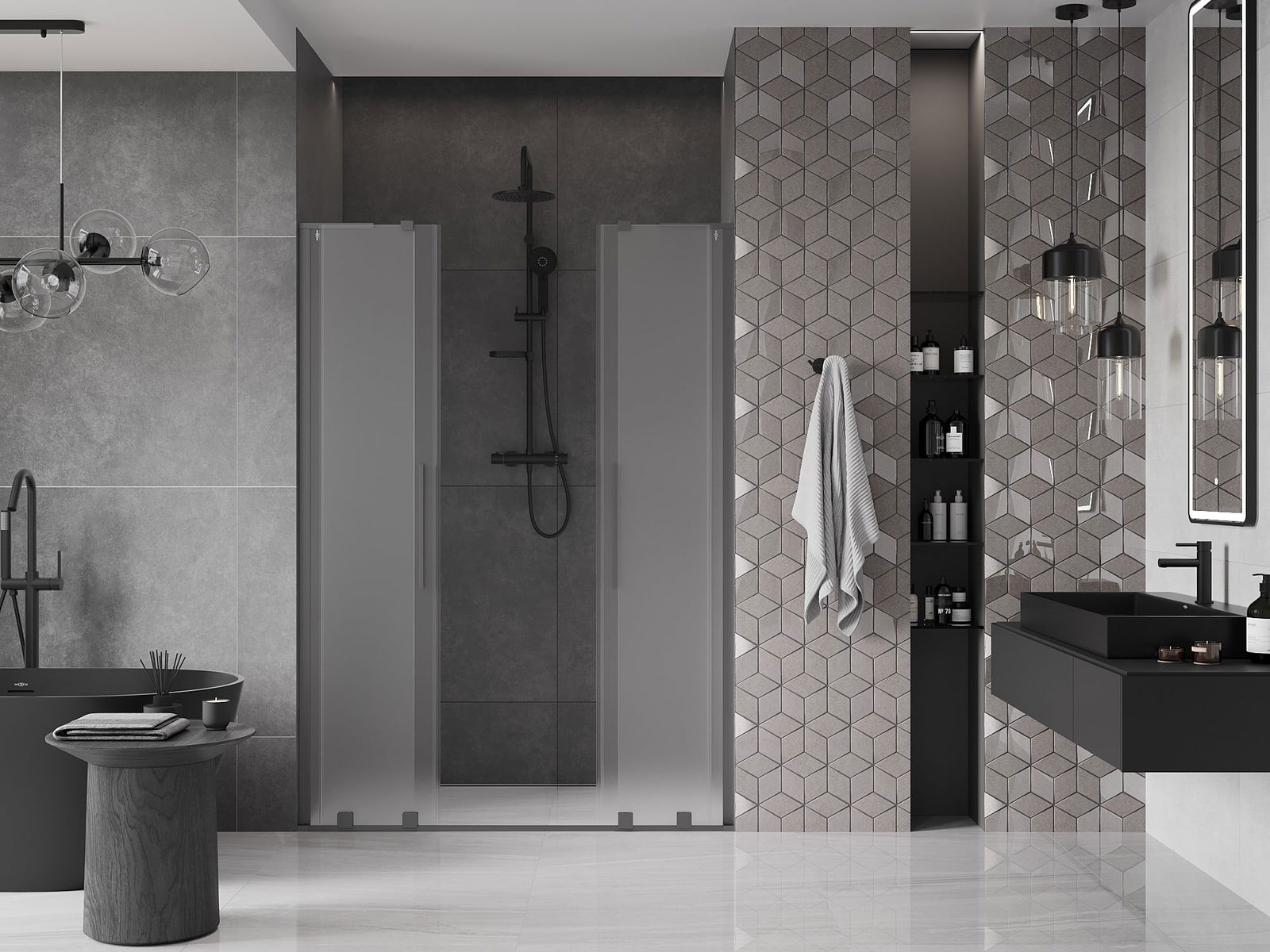 Mexen Velar L Duo sprchové dveře posuvné 160 cm, matné, gun metal - 871-160-003-32-95