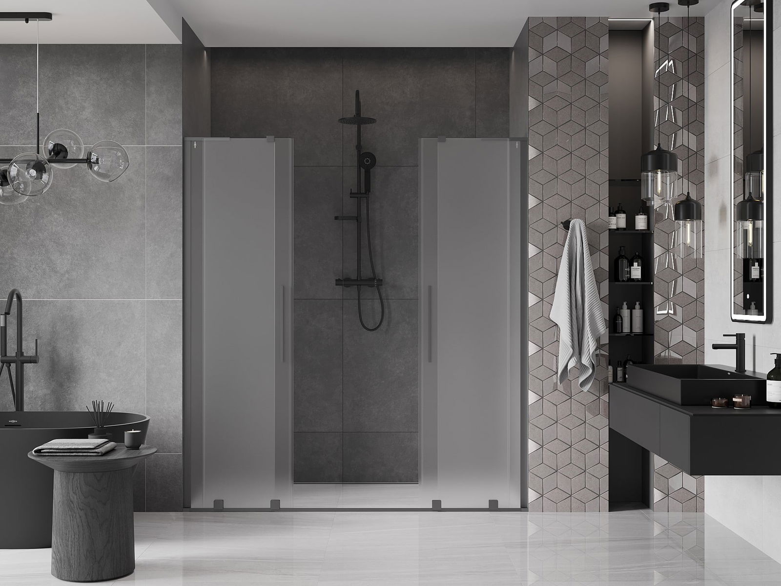 Mexen Velar L Duo posuvné sprchové dveře 170 cm, matné sklo, gun metal - 871-170-003-32-95