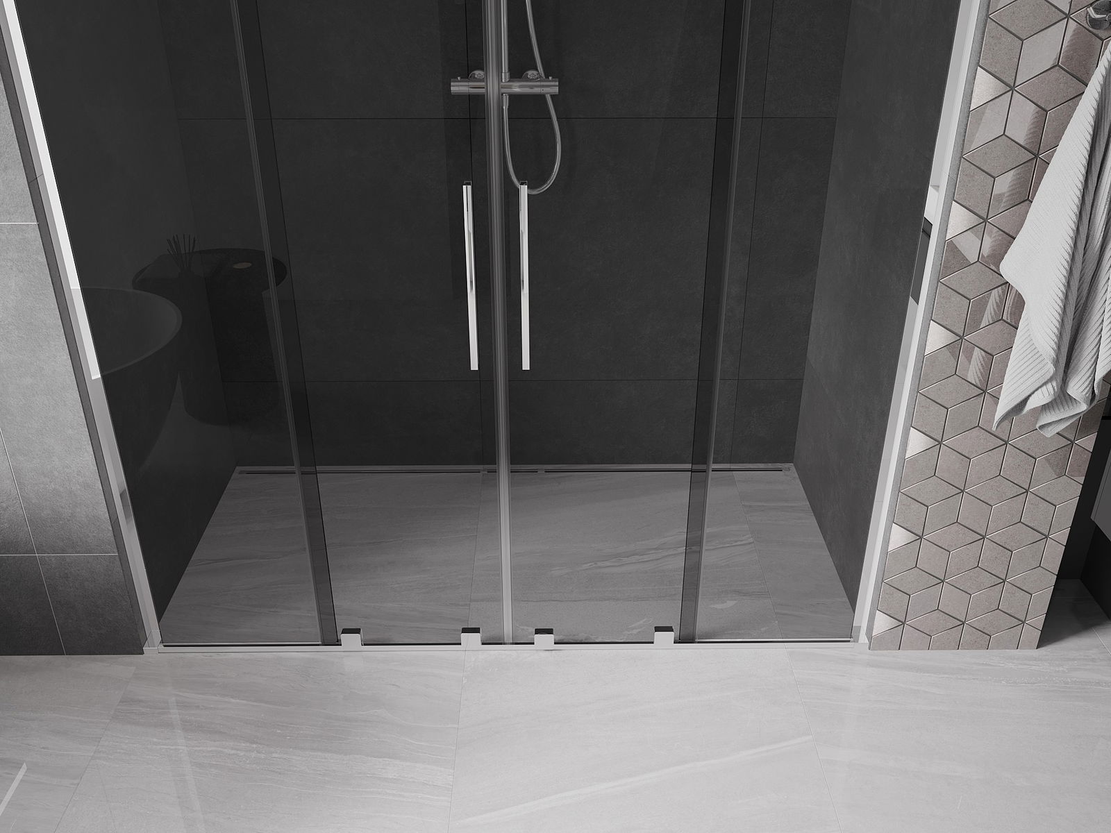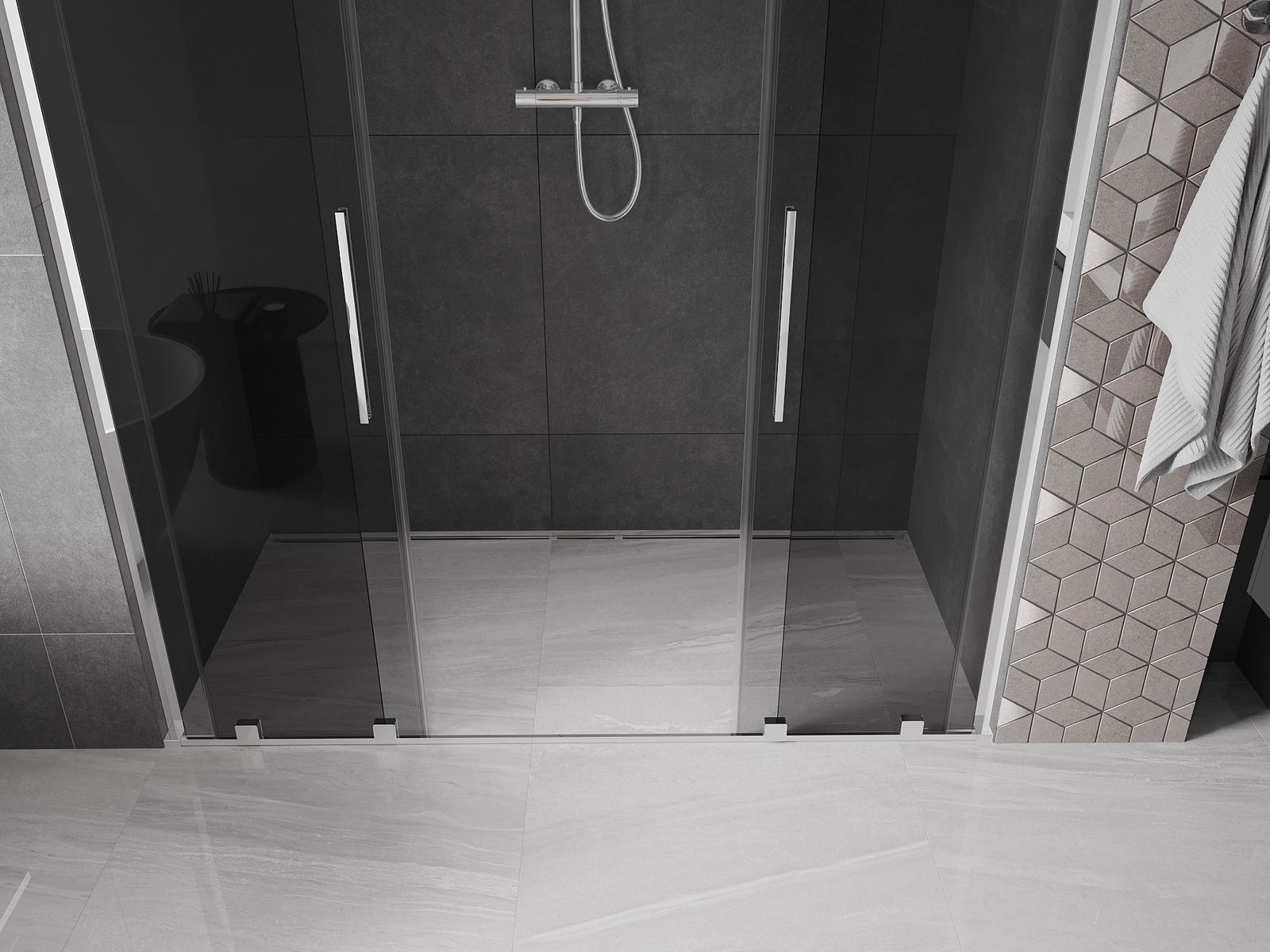 Mexen Velar L Duo posuvné sprchové dveře 200 cm, grafit, chrom - 871-200-003-42-01