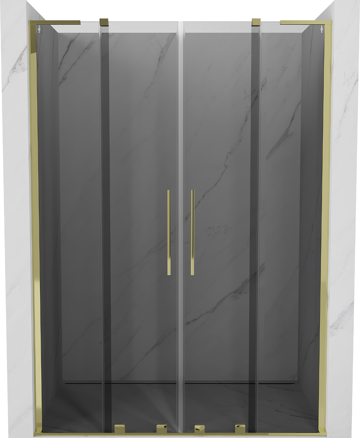 Mexen Velar L Duo posuvné sprchové dveře 140 cm, grafitové, zlaté - 871-140-003-42-50