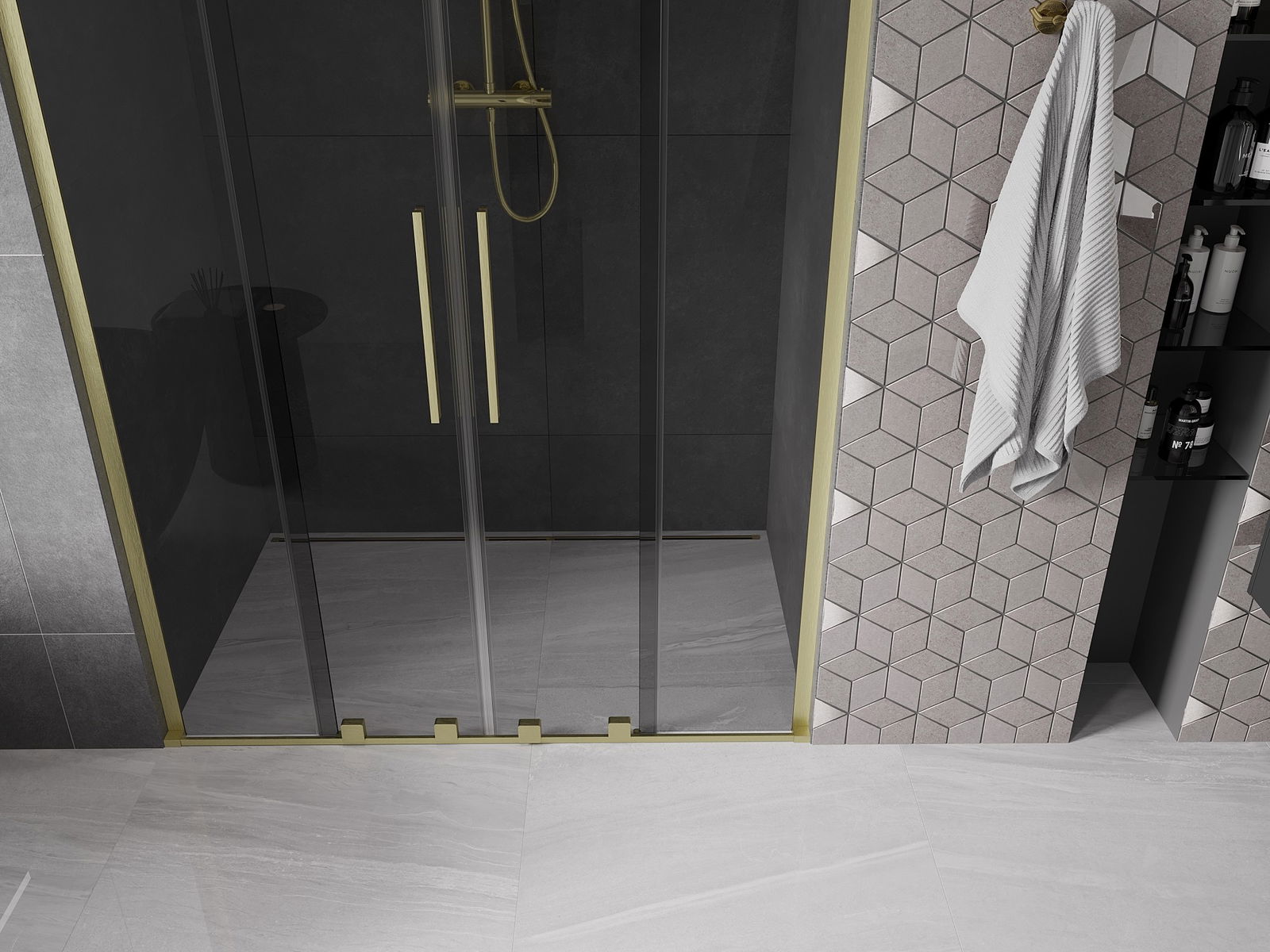 Mexen Velar L Duo posuvné sprchové dveře 140 cm, grafit, zlatý kartáčovaný - 871-140-003-42-55