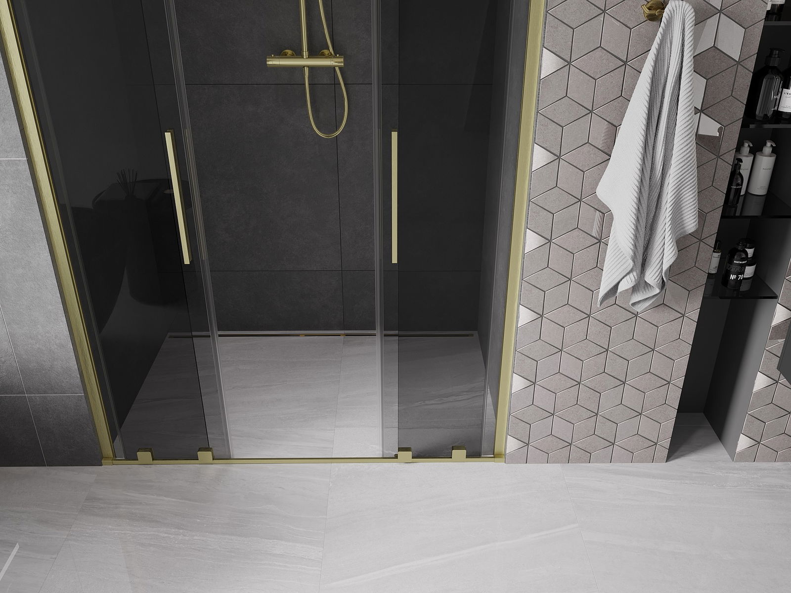 Mexen Velar L Duo posuvné sprchové dveře 160 cm, grafitové, zlaté kartáčované - 871-160-003-42-55