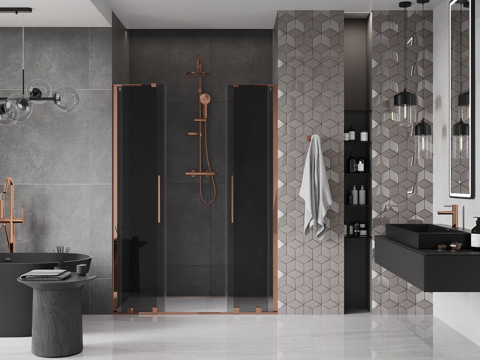 Mexen Velar L Duo posuvné sprchové dveře 140 cm, grafit, růžové zlato - 871-140-003-42-60