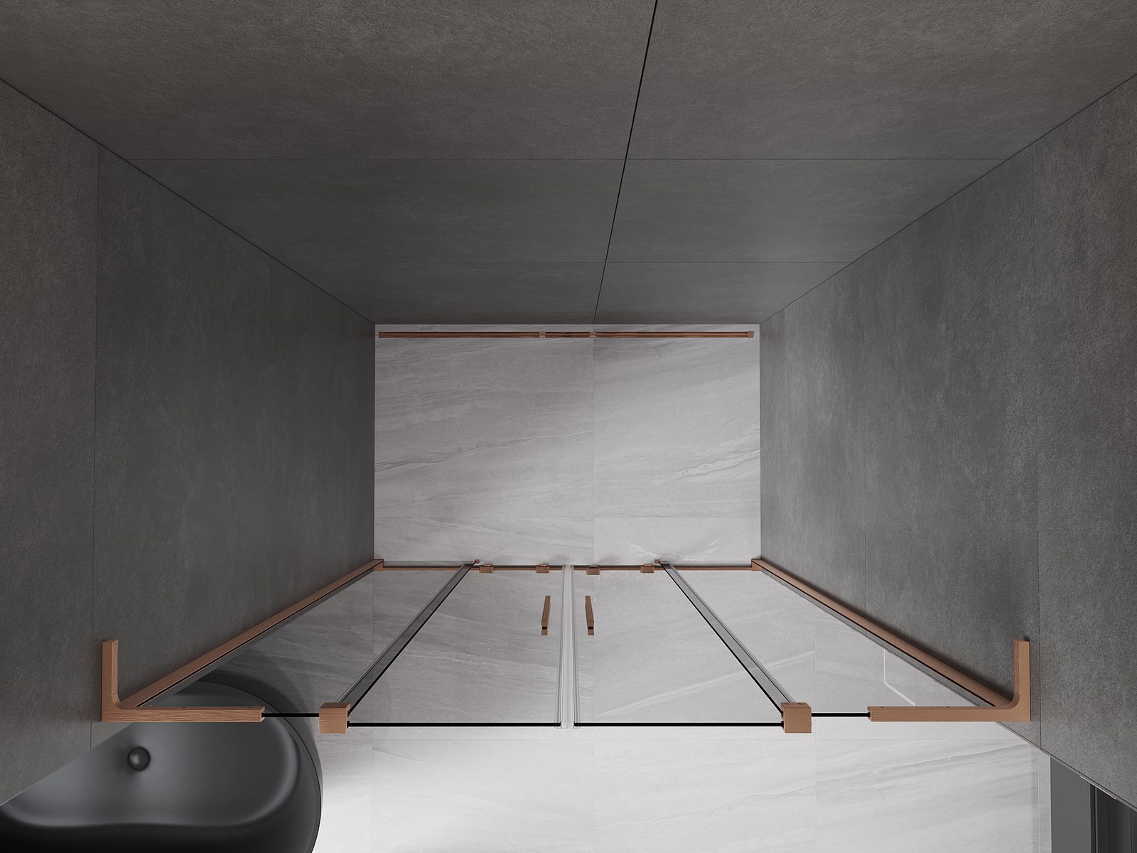 Mexen Velar L Duo posuvné sprchové dveře 160 cm, grafit, kartáčovaná měď - 871-160-003-42-65